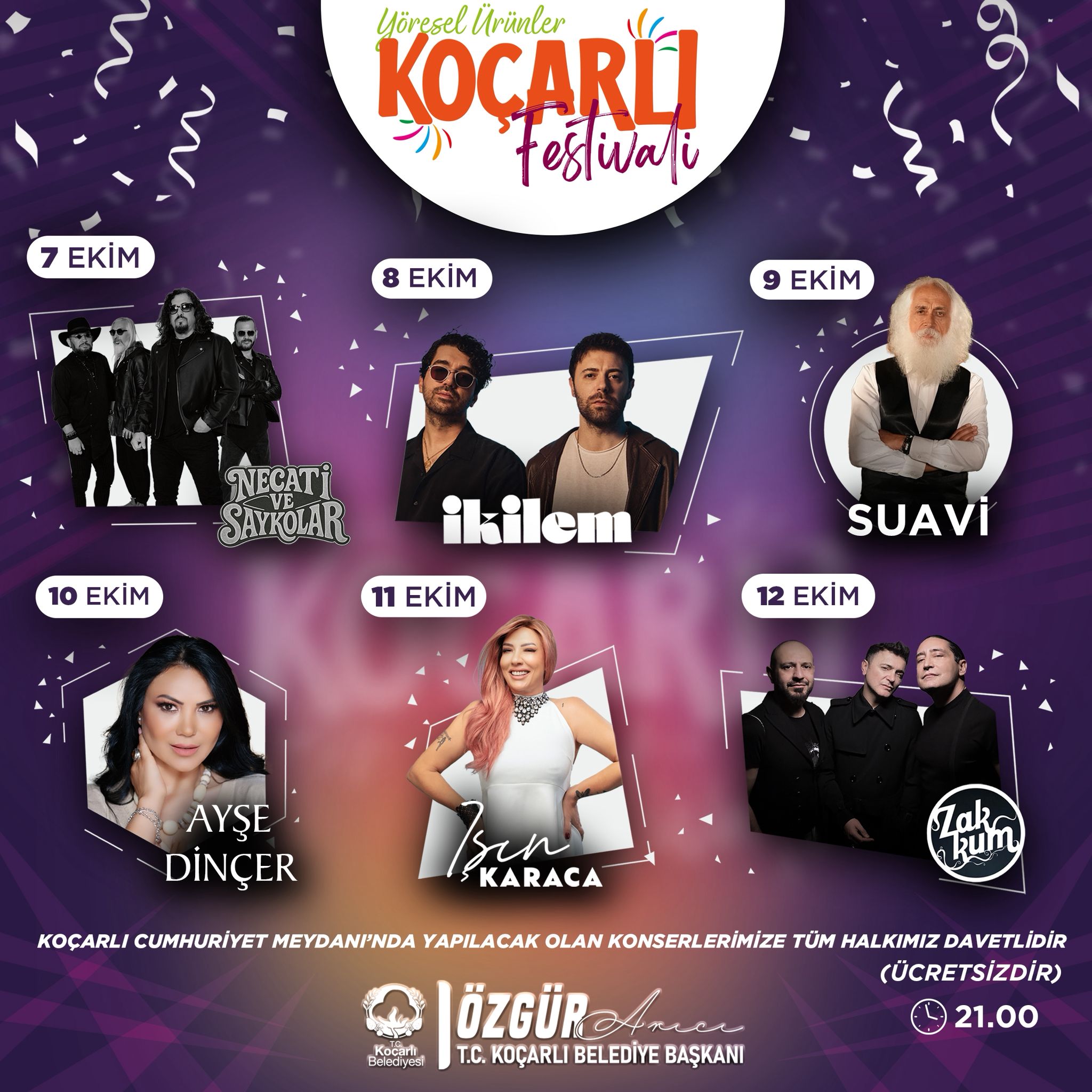 6 gün boyunca devam edecek olan Koçarlı yöresel ürünler festivali ilçede kurulan lunapark ve standlar ile gündüzleri göz doldururken, akşam saatlerinde her güne ayrı sanatçı ile eğlenceye imza atacak.