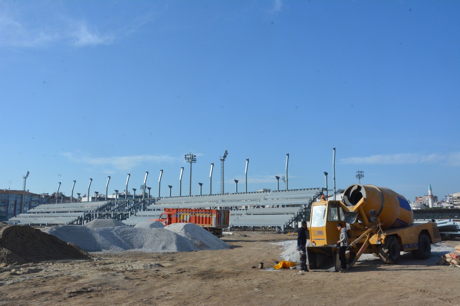 Profesyonel lig standartlarında, 6 bin seyirci kapasiteli olarak projelendirilen yeni stadın yıl sonuna kadar tamamlanması için sahada yoğun bir mesai yürütülüyor. Şantiyede 5 iş makinesi, 6 kamyon ve 35 kişilik ekip gece gündüz demeden çalışırken, çelik tribünlerin büyük bölümü tamamlandı ve sahada ince işçilik aşamasına geçildi. Yetkililer, önümüzdeki hafta FIFA standartlarının da üzerinde bir kaliteye sahip olan özel çimin serimine başlanacağını belirtti. Stadyumun doğal çim sahası, ileri altyapı sistemleri, tartan pisti, saha aydınlatmaları, su deposu ve yenilenmiş deplasman alanlarıyla modern bir spor kompleksi haline geleceği ifade edildi. Doğu ve karşı tribünlerde küçük dokunuşların kaldığı, batı tribününde ise enerji odaları, teknik odalar, kazan dairesi, seyirci tuvaletleri ve antrenman salonlarının tamamlanmak üzere olduğu kaydedildi.