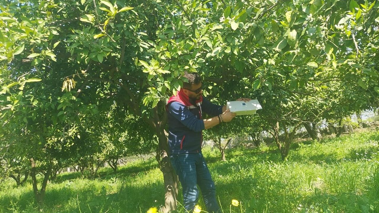 Aydın'ın Koçarlı ilçesinde tarım alanlarında zararlı takibi sürüyor. Koçarlı İlçe Tarım ve Orman Müdürlüğü teknik ekipleri, narenciye ve diğer meyve üretim alanlarında verim kaybına neden olan Akdeniz meyve sineğine karşı yürütülen mücadele kapsamında tuzak kontrollerine devam ediyor.
