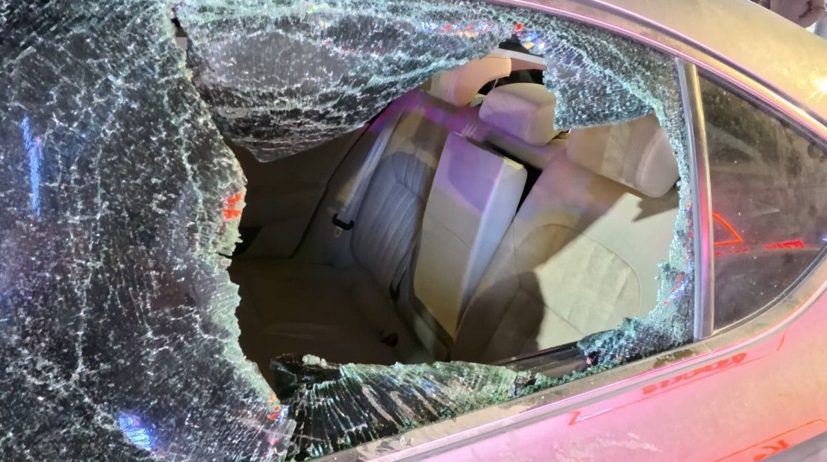 Tekme atarak araç camlarını kırmaya çalışan kadın erkek vatandaşlar, bir süre sonra sürücüyü tekme tokat darbetti.