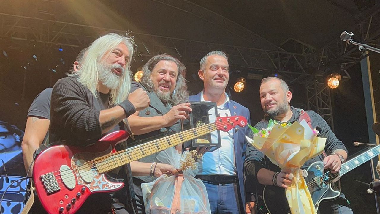 Gruba plaket vermek için sahneye çıkan Koçarlı Belediye Başkanı Özgür Arıcı, “Bu şarkı beni yansıtıyor, bizim yolumuz zor ama doğru” diyerek sahneden dikkat çeken bir mesaj verdi.