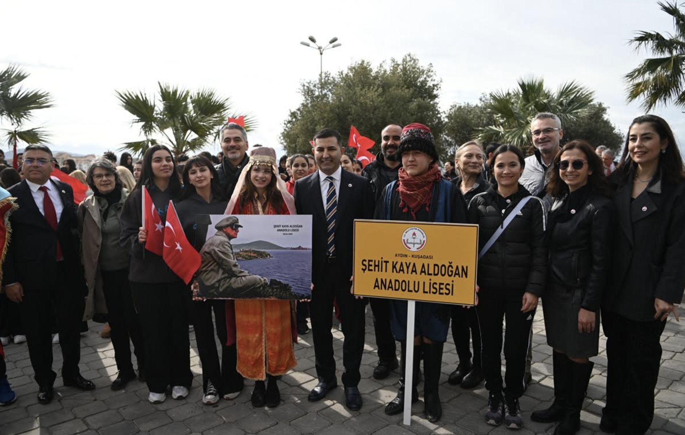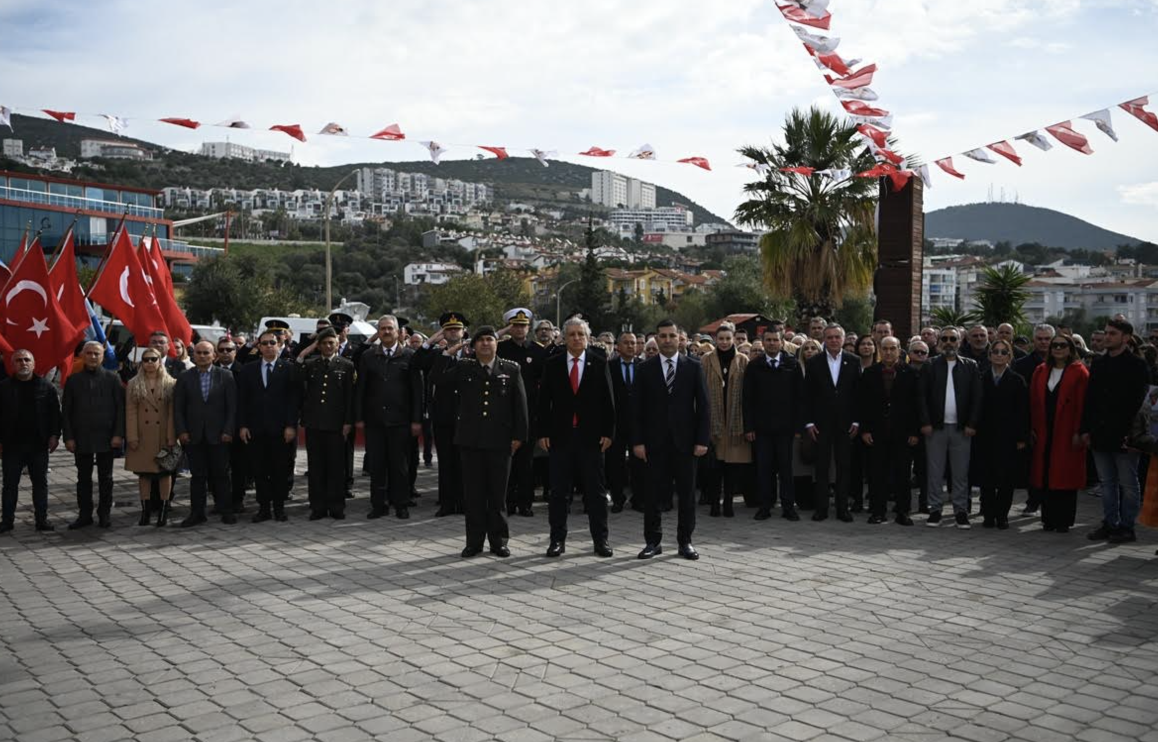 Törene Kuşadası Kaymakamı İbrahim Keklik, Kuşadası Garnizon Komutanı Personel Albay Metin Şimşek, Kuşadası Belediye Başkanı Ömer Günel, belediye meclis üyeleri, idari amirler, siyasi parti temsilcileri, sivil toplum kuruluşlarının yöneticileri, öğrenciler ve çok sayıda vatandaş katıldı.