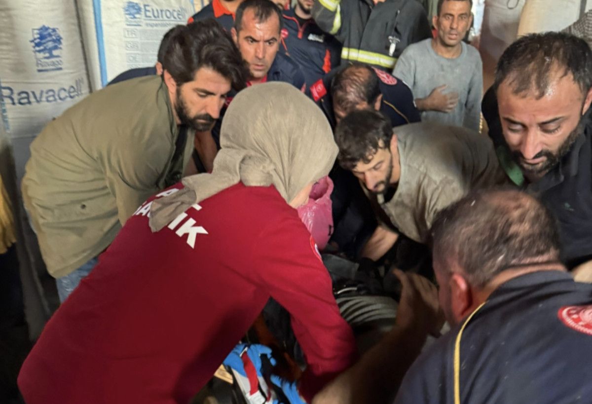 İtfaiye ve AFAD ekiplerinin uzun süren çalışması sonucu ayağı sıkıştığı yerden çıkarılan işçi, sağlık ekiplerine teslim edildi.