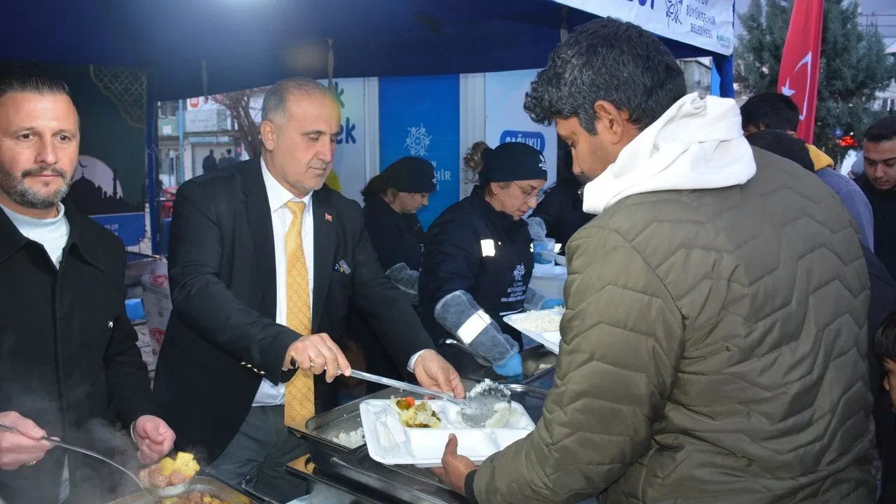 Mahalle sakinleriyle yakından ilgilenen Başkan Kaya, AK Parti İlçe Başkanı Yüzbaşıoğlu ve Acarlar Koordinatörü Ertuğ ile birlikte yemek kazanlarının başına geçerek vatandaşlara kendi elleriyle yemek dağıttı.