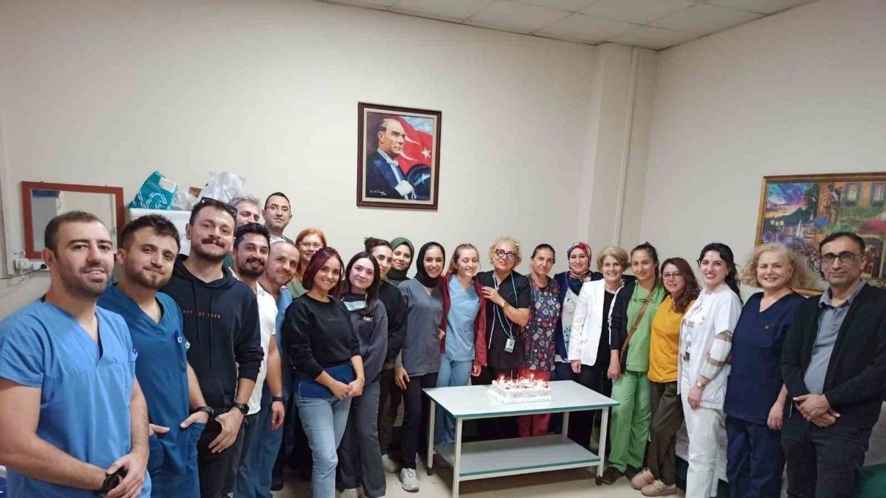 Aydın Devlet Hastanemizde, cerrahi başarıların sessiz mimarları olan anestezi çalışanlarımızın Dünya Anestezi Günü kutlandı. Hastane yöneticilerimizin katılımıyla gerçekleştirilen etkinlikte pasta kesimi yapıldı, ekip arkadaşlarımızla birlikte hatıra fotoğrafı çekildi. Hastalarımıza güven, ekibimize güç katan tüm anestezi çalışanlarımıza emekleri için teşekkür ediyor, meslek hayatlarında başarılar diliyoruz" ifadelerine yer verildi.