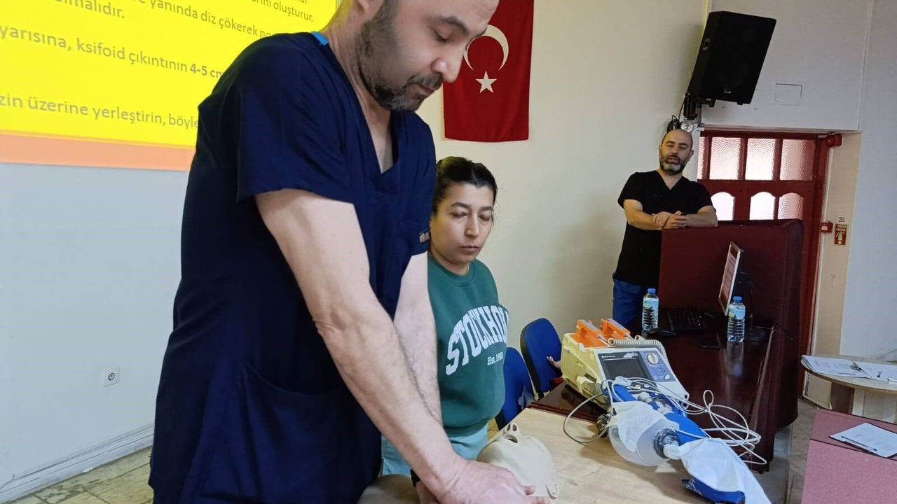 Aydın Devlet Hastanesi'nde sağlık personelinin acil durumlara hazırlık düzeyini artırmak müdahale kapasitesini güçlendirmek ve hasta güvenliğini en üst seviyeye çıkarmak için eğitimler sürüyor. Bu kapsamda Acil Servis Çalışanları ile Sağlık Hizmetleri Sınıfı personeline teorik ve uygulamalı eğitimler verildi. Katılımcılar, doğru hasta sınıflandırması ve acil müdahale teknikleri üzerine uygulamalı eğitimlerle bilgilendirildi.