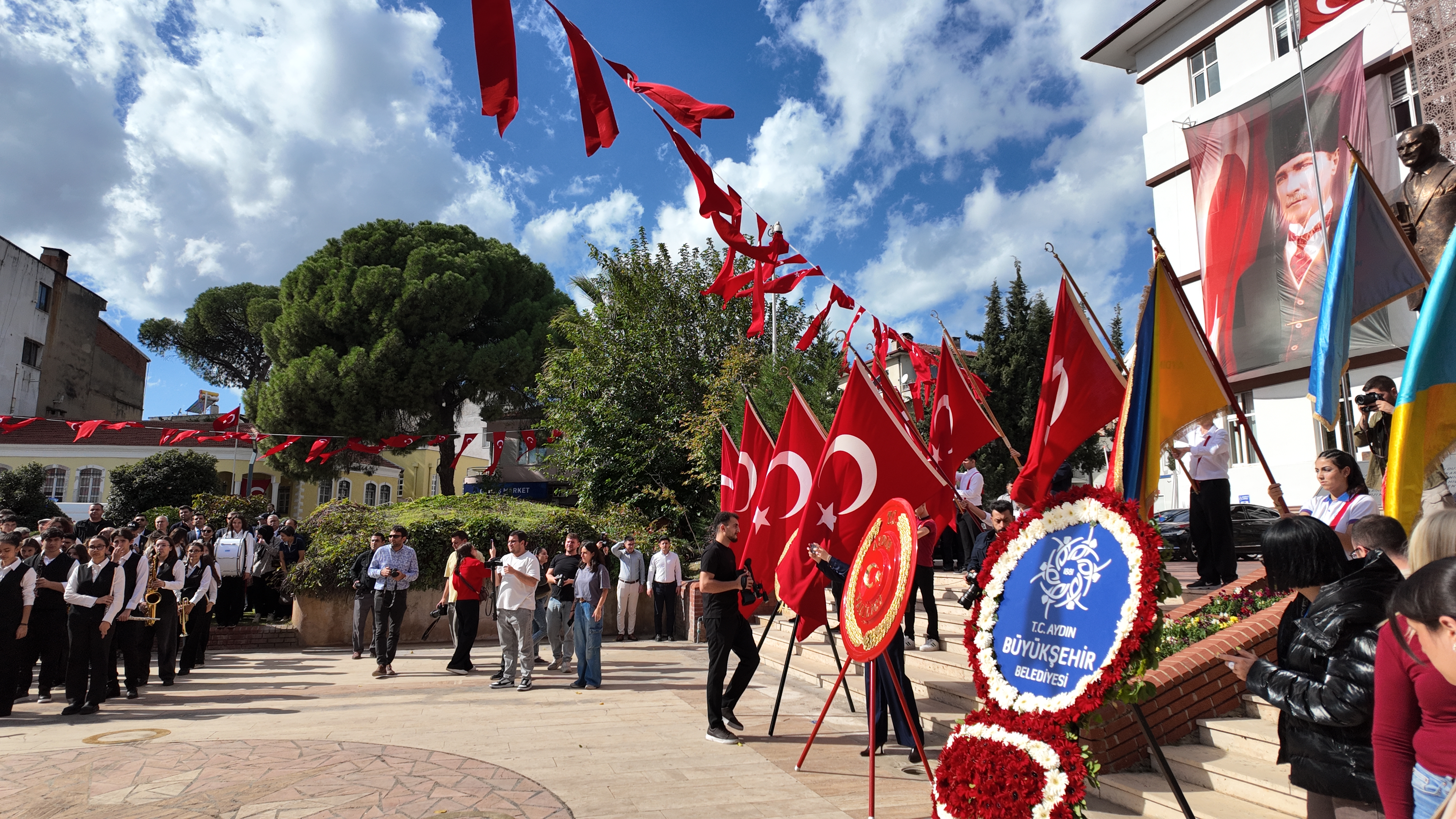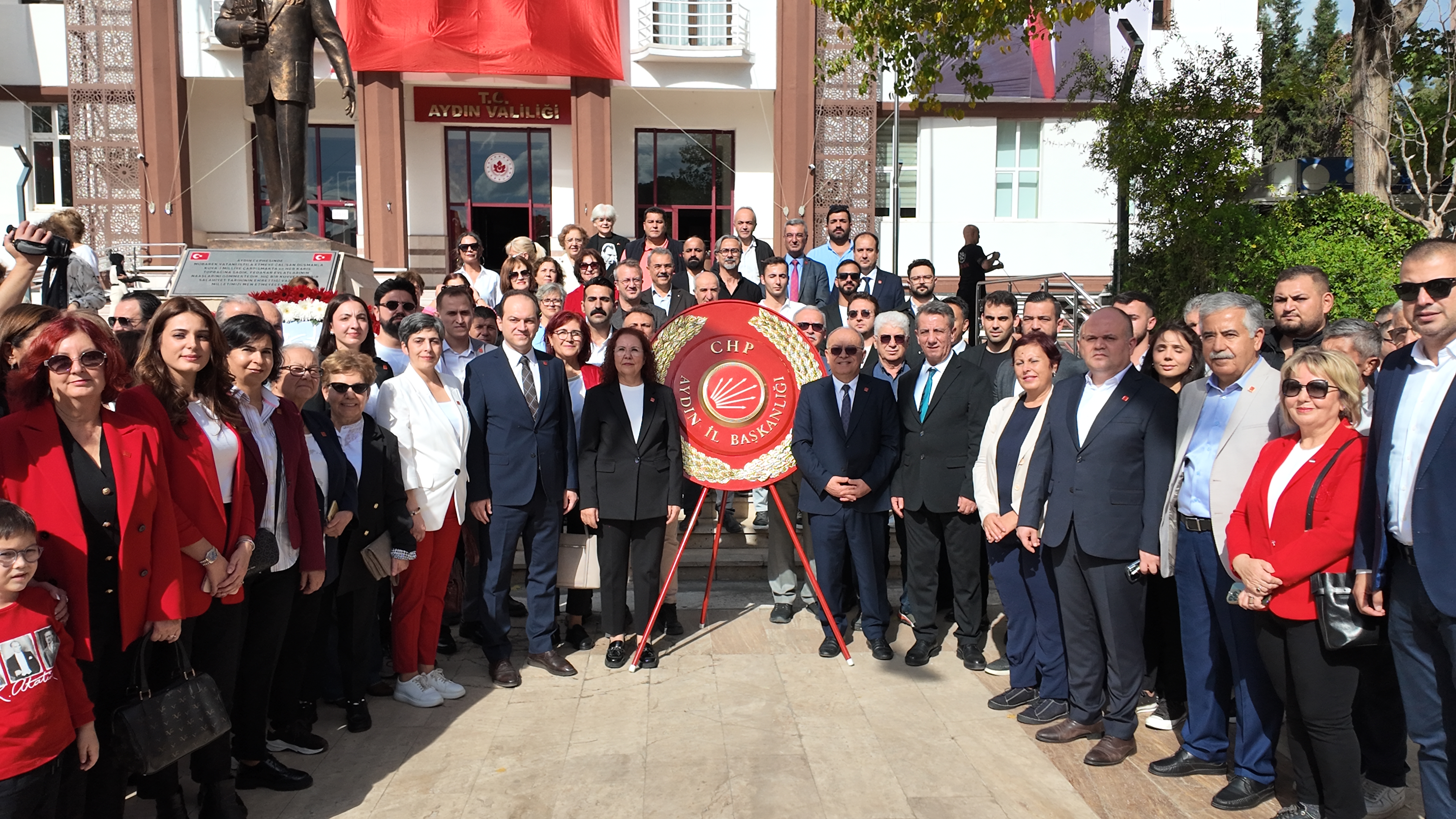 Cumhuriyet’in 102. yılı kutlamaları kapsamında Aydın Valiliği önünde çelenk sunma töreni gerçekleştirildi. Törene Aydın Valisi başta olmak üzere Büyükşehir Belediye Başkanı Özlem Çerçioğlu, AK Parti Aydın Milletvekili Seda Sarıbaş, CHP Aydın İl Başkanı Hikmet Saatçi, AK Parti İl Başkanı Gökhan Ökten, MHP İl Başkanı Haluk Alıcık, İYİ Parti İl Başkanı Anıl Yetişkin, Efeler Belediye Başkanı Mehmet Erdem ve diğer tüm protokol üyeleri katıldı.