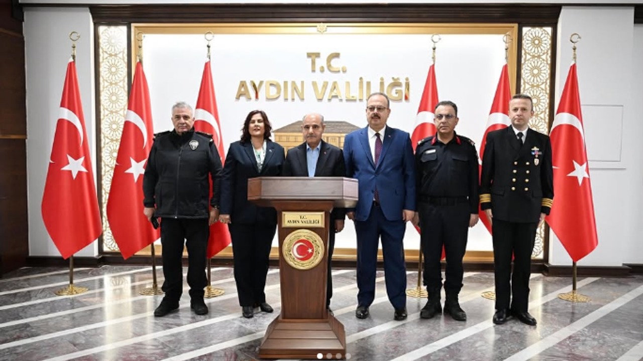 İçişleri Bakan Yardımcısı Mehmet Aktaş, Aydın Valisi Yakup Canbolat, İl Emniyet Müdürü Armağan Adnan Erdoğan, İl Jandarma Komutanı Necip Çarıkcıoğlu, Sahil Güvenlik Orta Ege Grup Komutanı Engin Anar ve Aydın Büyükşehir Belediye Başkanı Özlem Çerçioğlu, Aydın Valiliği’nde bir araya geldi.