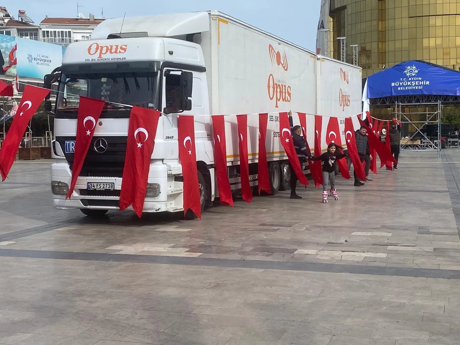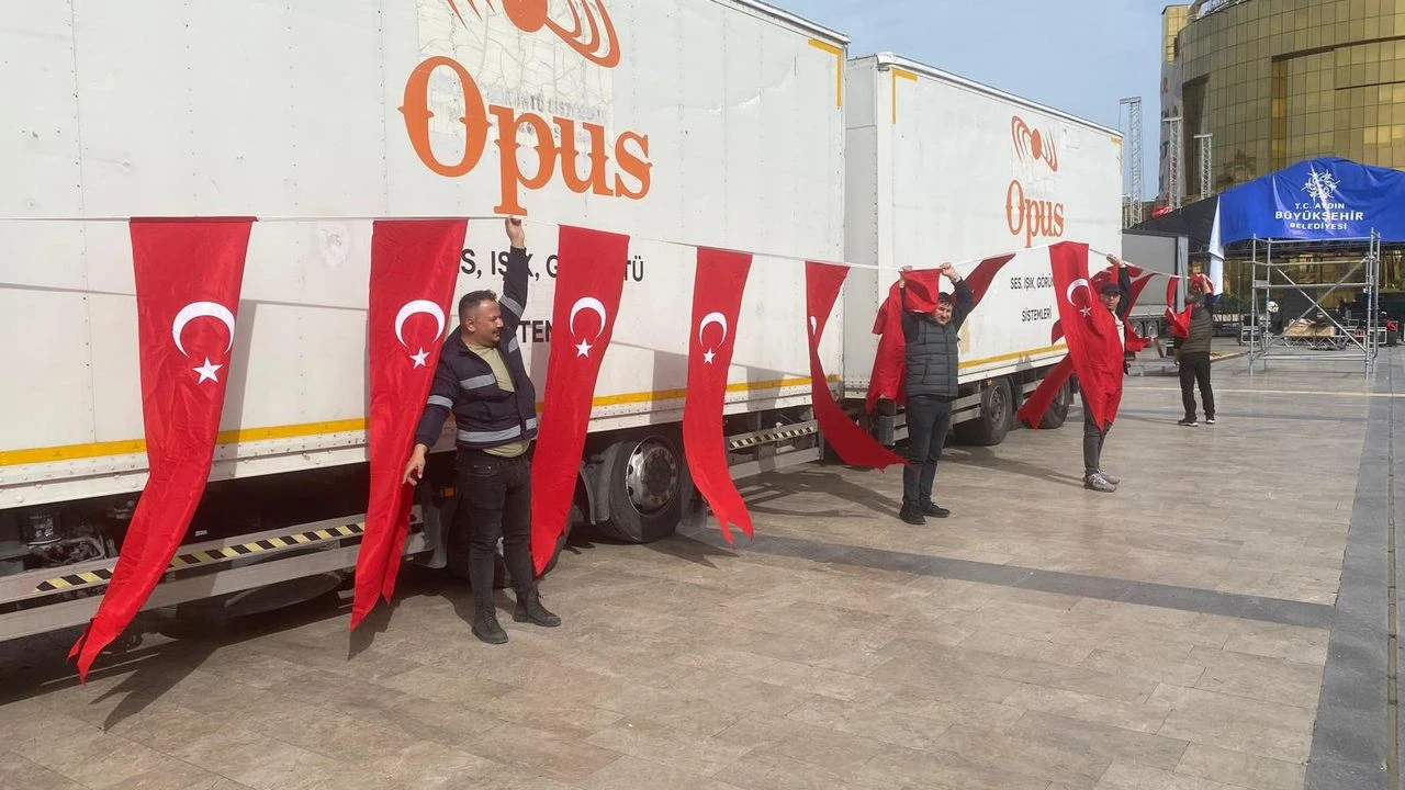 14 Şubat Sevgililer Günü etkinlikleri kapsamında gerçekleştirilen konserin ardından, meydanda bulunan bayrakların söküm ve toplama işlemleri başlatıldı. Çalışmalar sırasında görev alan Aydın Büyükşehir Belediyesi personelleri, bayrakların yere değmemesi için yoğun çaba harcadı.