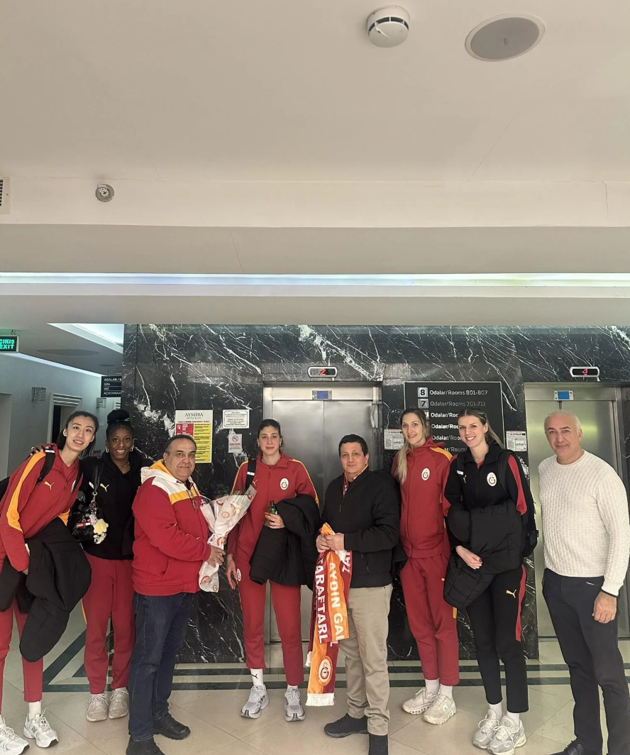 Karşılaşma öncesi Aymira Otel ve Spa’da kamp yapan Galatasaray Kadın Voleybol Takımı’nı, Aydın Galatasaraylılar Taraftarlar Derneği Başkanı Fevzi Eryalçın ve yönetim kurulu üyeleri ziyaret etti. Ziyarette takım kaptanı İlkin Aydın başta olmak üzere sarı-kırmızılı oyunculara çiçek takdim edildi.
