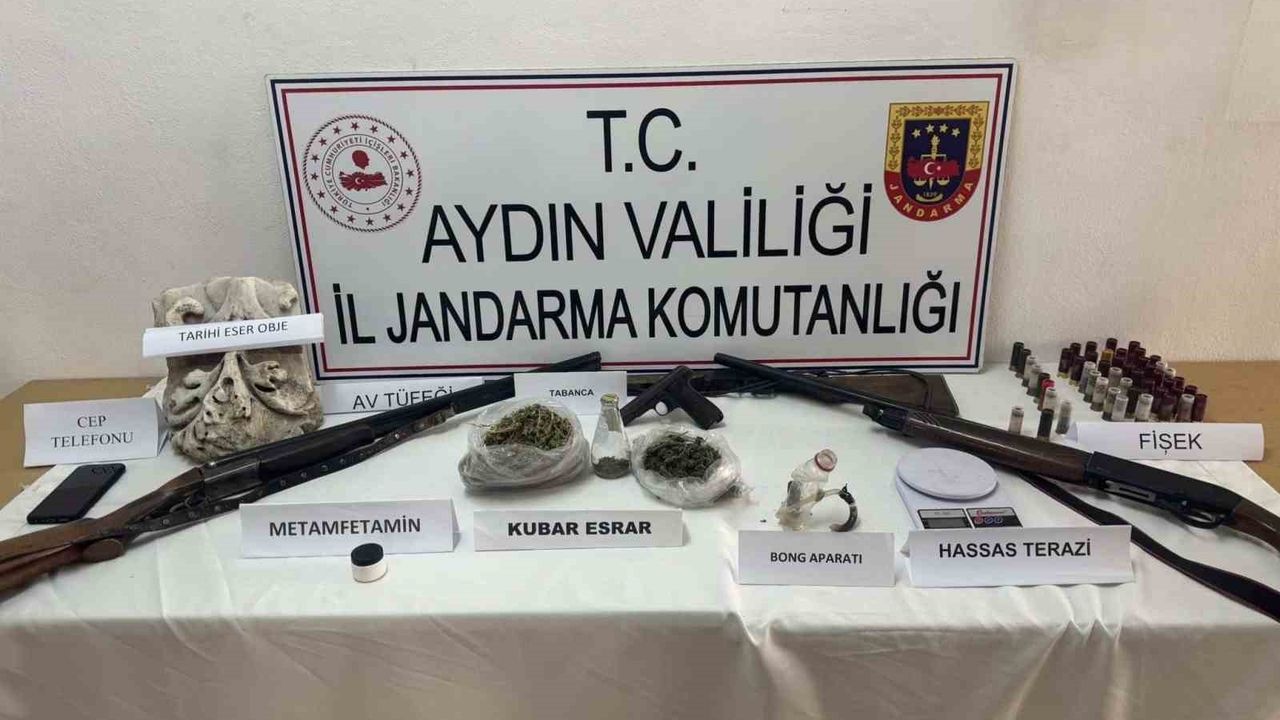 Aydın İl Jandarma Komutanlığı Narkotik Suçlarla Mücadele Şube Müdürlüğü ile Sultanhisar İlçe Jandarma Komutanlığı ekiplerince, uyuşturucu ile mücadele kapsamında operasyon yapıldı. Nazilli ilçesi Karaçay Mahallesi ile Sultanhisar ilçesi Eskihisar Mahallesi'nde A.H. (61) isimli şahsa ait 5 ayrı adreste eş zamanlı arama gerçekleştirildi. Yapılan aramalarda 498 gram kubar esrar, 3 gram metamfetamin, dijital hassas terazi, 1 adet ruhsatsız tabanca, 16 adet fişek, 3 adet ruhsatsız av tüfeği, 29 adet av tüfeği fişeği, Roma dönemine ait tarihi obje, 1 adet cep telefonu, uyuşturucu kullanma aparatı ele geçirildi. Olayla ilgili olarak şüpheli şahıs gözaltına alındı.