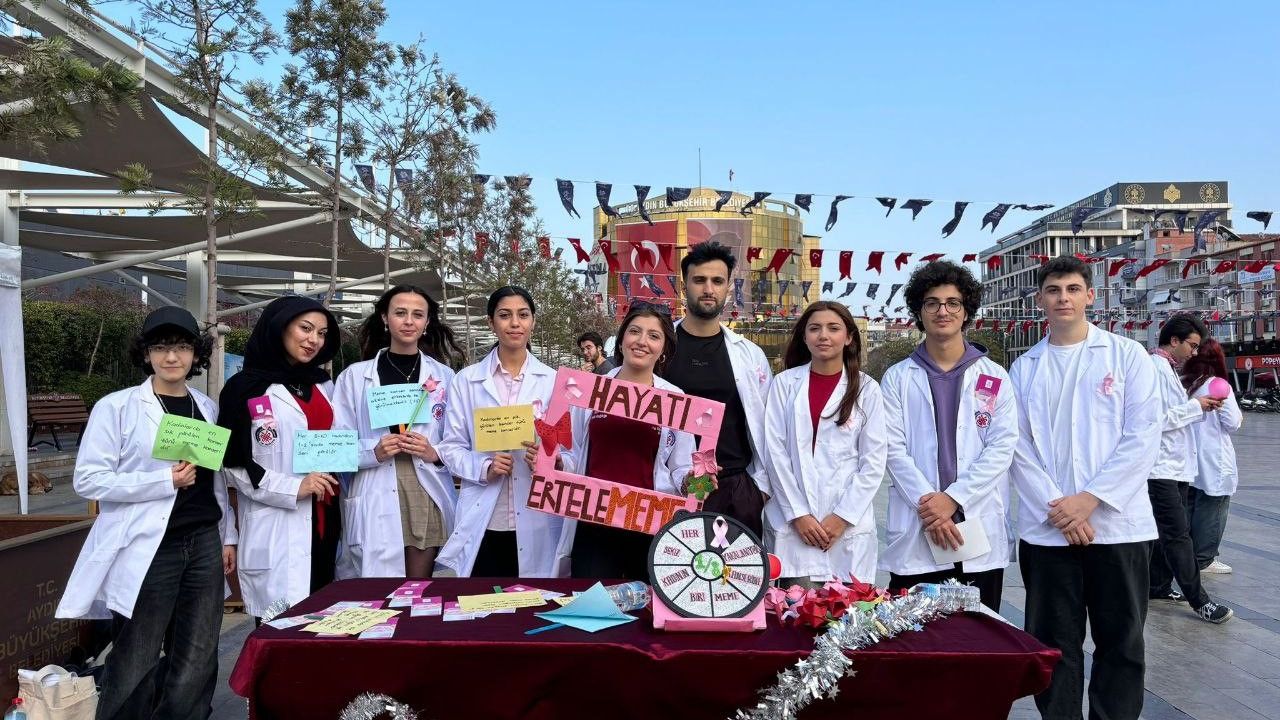 Aydın Gençlik Merkezi, Aydın Türk Tıp Öğrencileri Topluluğu (TURKMSIC) iş birliğiyle Atatürk Kent Meydanı’nda "Meme Kanseri Farkındalık Etkinliği" düzenledi. Erken teşhisin önemine dikkat çeken tıp öğrencileri kent meydanında bilgilendirme standı kurdu. Etkinlikte vatandaşlara erken teşhisin önemini anlatan öğrenciler bir yandan da bilgilendirme broşürleri dağıttı. "Hayatı Erteleme, Erken Teşhis Hayat Kurtarır" sloganı ile genç hekim adayları meme kanserine dikkat çekerek farkındalık oluşturdu. Kadınların düzenli kontrollerini aksatmaması gerektiği vurgulanan stantta, erken teşhisin tedavi başarısında büyük rol oynadığı ifade edildi.
