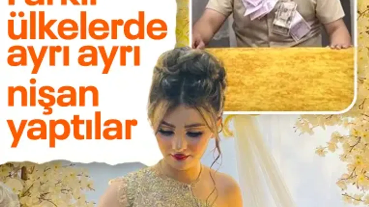 Gelin ve damat farklı ülkelerdeyken aynı anda nişan töreni düzenleyip, aynı anda pasta keserek nişan törenlerini gerçekleştirdi.