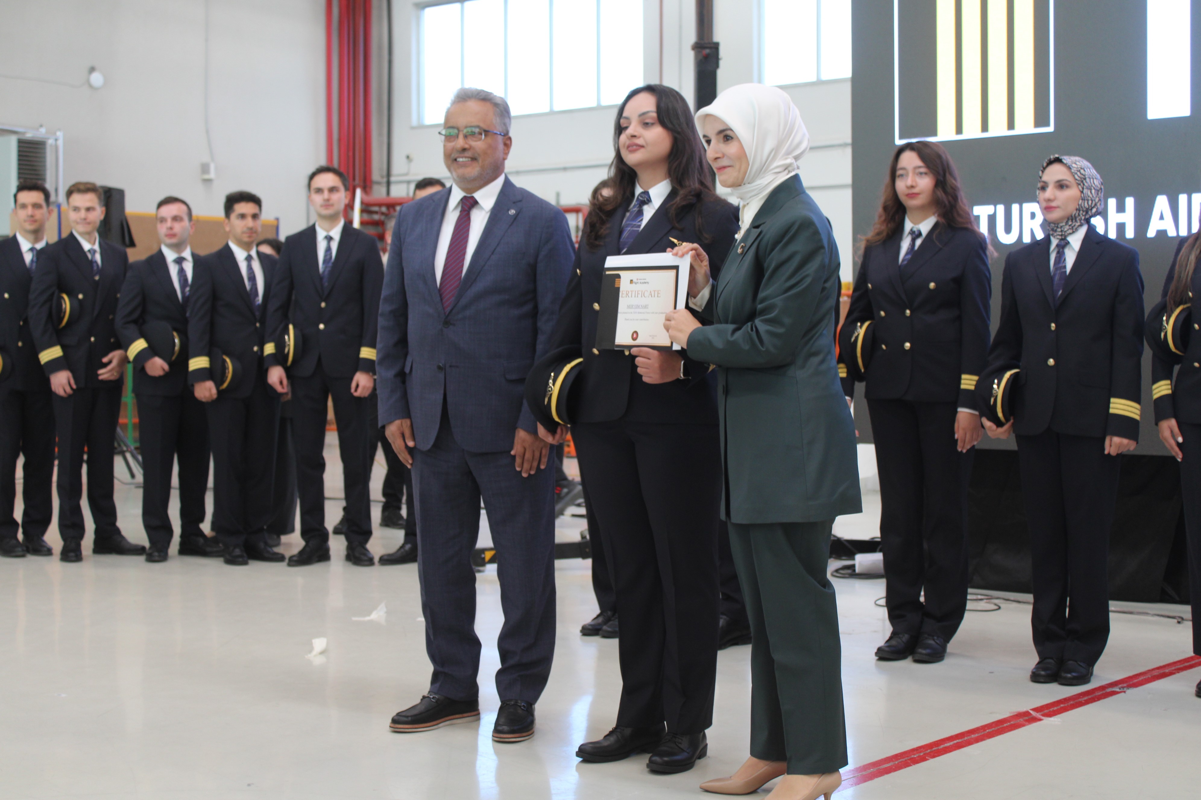 Konuşmaların ardından Aile ve Sosyal Hizmetler Bakanı Mahinur Özdemir Göktaş ve beraberindeki protokol üyeleri akademiden mezun olan genç pilotlara brövelerini takdim ederek başarılar diledi.