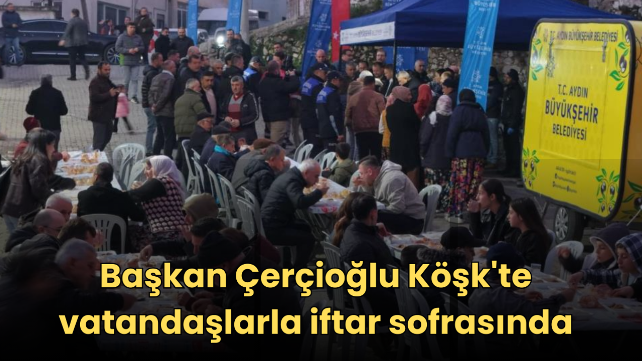 Aydın Büyükşehir Belediye Başkanı Özlem Çerçioğlu; Köşk Belediye Başkanı Nuri Güler, AK Parti Köşk İlçe Başkanı Bünyamin Kahraman, meclis üyeleri ve muhtarlar ile birlikte Köşk ilçesi Akçaköy Mahallesi'nde düzenlenen iftarda vatandaşlar ile bir araya geldi.
