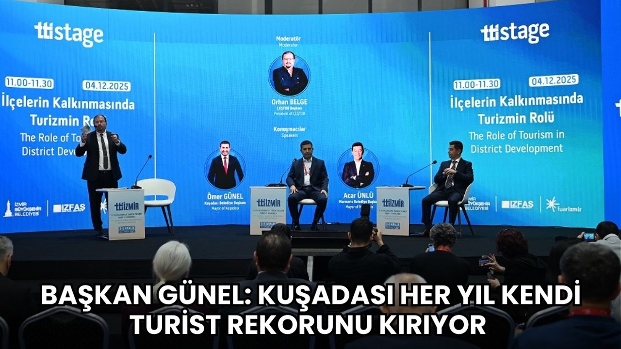 TTI İzmir 19’uncu Uluslararası Turizm Ticaret Fuar ve Kongresi, 54 ülkenin katılımıyla dün başladı. Kültür ve Turizm Bakanlığı himayesinde, İzmir Büyükşehir Belediyesi ev sahipliğinde, İZFAŞ ve TÜRSAB iş birliğiyle düzenlenen fuarı, Kuşadası Belediye Başkanı Ömer Günel de ziyaret edip, İlçelerin Kalkınmasında Turizmin Rolü isimli panele katıldı. Panelde, ÇEŞTOB Başkanı Moderatör Orhan Belge’nin sorularını yanıtlayan Başkan Ömer Günel, Kuşadası’nda turizminin 12 aya yayılması için hayata geçirdikleri projeler ile yapılması gerekenleri anlattı.