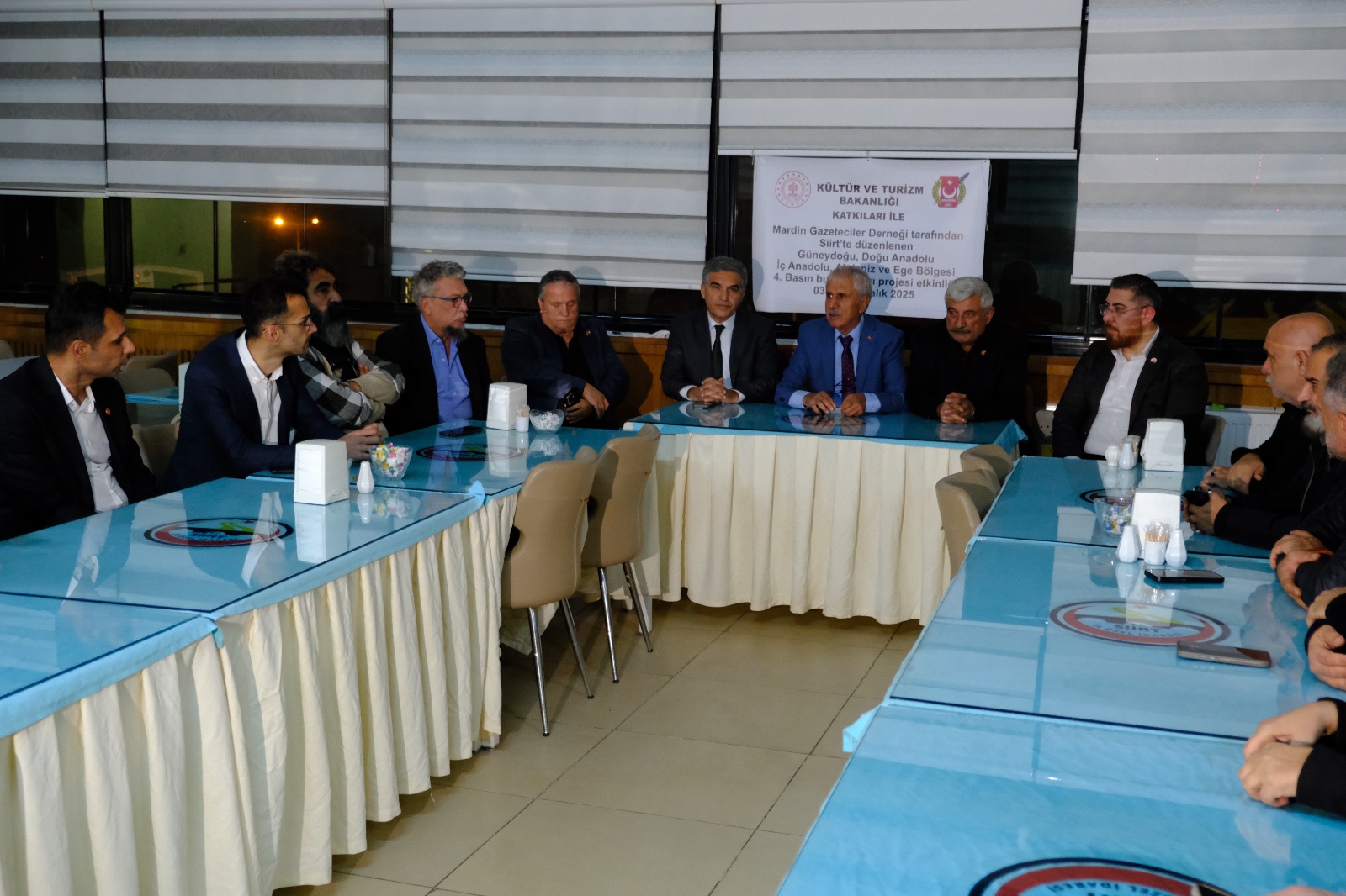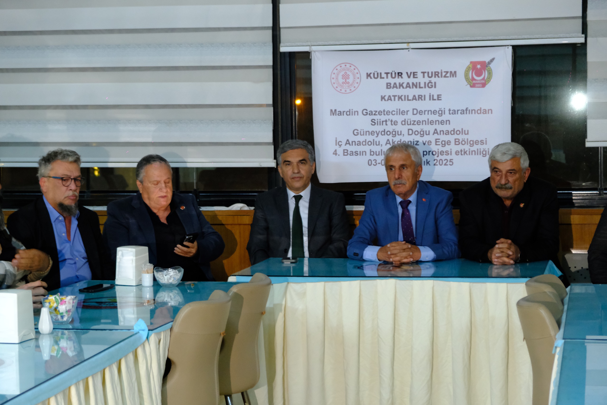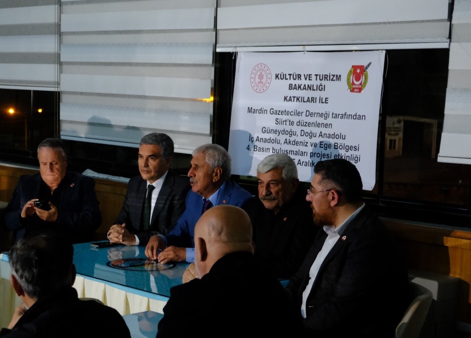Mardin Gazeteciler Derneği tarafından Güneydoğu, Doğu Anadolu, İç Anadolu, Akdeniz ve Ege Bölgesi 4. Basın Buluşmaları toplantısı Siirt’te gerçekleştirildi. Siirt Belediyesi Kızlar Tepesi Tesisleri ev sahipliğinde gerçekleşen toplantıya GGF Başkanı Mehmet Çelik, Aydın Büyükşehir Gazeteciler Cemiyeti ve Nazilli Gazeteciler Cemiyeti Başkanı Ümit Özmen, Basın İlan Kurumu Genel Kurul Üyesi ve Ege Gazeteciler Federasyonu Genel Başkan Yardımcısı Seda Köktener, Siirt, Adıyaman, Batman, Bolu, Diyarbakır, Gaziantep, Kilis, Mardin, Muğla, Mersin, Nevşehir, Şanlıurfa ve Şırnak illerinin cemiyet başkanlarının yanı sıra Türkiye’nin farklı bölgelerinden gelen çok sayıda basın temsilcisi katıldı.
