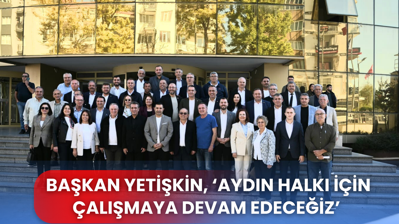 Aydın Büyükşehir Belediye hizmet binası önünde CHP’li belediye başkanları ve belediye meclis üyeleriyle fotoğraf paylaşan Başkan Yetişkin, şu ifadeleri kullandı: "Aydın Büyükşehir Belediye Meclisi Ekim ayı Olağan Meclis Toplantısını yoğun güvenlik önlemleri altında gerçekleştirdik. Demokrasinin, hoşgörünün ve ortak aklın egemen olması gereken bir mecliste bu tabloyu görmek üzücü olsa da biz Aydın halkının menfaati için yapıcı bir anlayışla çalışmaya devam edeceğiz."