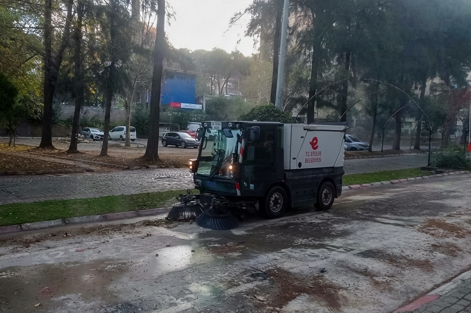 Efeler Belediyesi Temizlik İşleri Müdürlüğü ekipleri, süpürme çalışmalarına ek olarak sokak ve mahallelerde düzenli yıkama faaliyetlerini sürdürüyor. Tazyikli suyla yapılan bu yıkamalar, özellikle yoğun kullanılan bölgelerde hijyen seviyesini yükseltiyor. Ekipler, günün erken saatlerinden gece geç saatlere kadar ilçenin dört bir yanında kesintisiz temizlik çalışması yürütüyor. Böylece Efeler’in sokakları yalnızca temiz değil, aynı zamanda hijyenik ve ferah bir görünüme kavuşuyor.