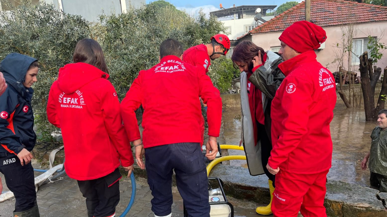 Efeler Belediye Başkanı Anıl Yetişkin’in talimatıyla harekete geçen EFAK ekipleri, olumsuz hava koşullarının ilk anından itibaren Söke’de sahada görev almaya başladı. İlçede altyapı sorunları nedeniyle birçok noktada su baskınları yaşanırken, bazı yollarda çökmeler meydana geldi. Derelerin taşması sonucu cadde, sokak ve evler suyla doldu.