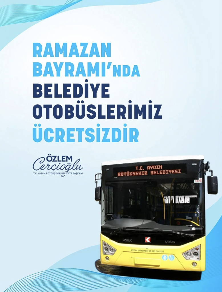 Başkan Çerçioğlu açıklamasında, “Sevgili Aydınlılar; Ramazan Bayramı süresince belediye otobüslerimiz ücretsiz olarak hizmetinizdedir. Sevdiklerinizle birlikte mutlu bayramlar diliyorum” ifadelerine yer verdi.
