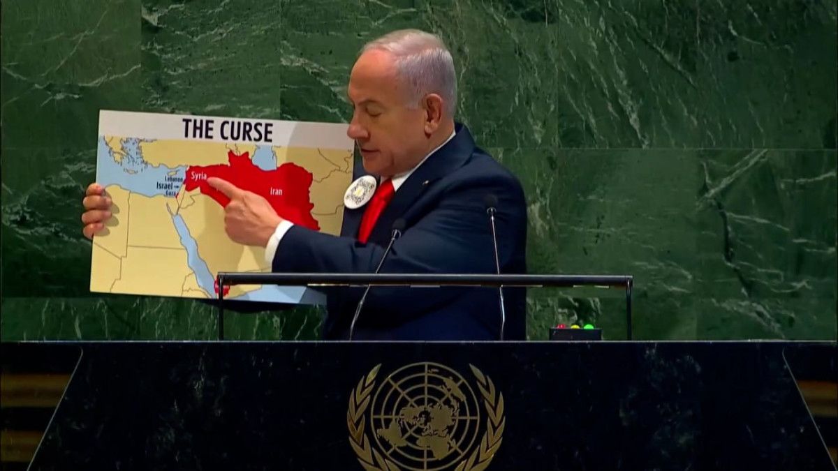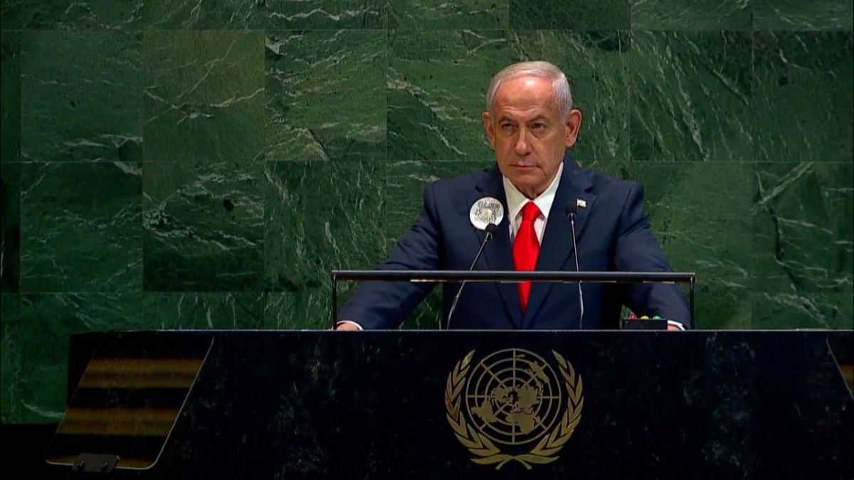Konuşma sırasında İran heyeti, İsrail’in İran’a saldırılarında hayatını kaybeden sivillerin fotoğraflarını masaya bıraktı ve ardından salonu terk etti. Netanyahu, hitabı sırasında Gazze, Lübnan, Yemen ve Suriye’ye yönelik İsrail saldırılarını savunarak, İran’ın dünya için bir tehdit olduğunu ve bu saldırıların meşru olduğunu öne sürdü.