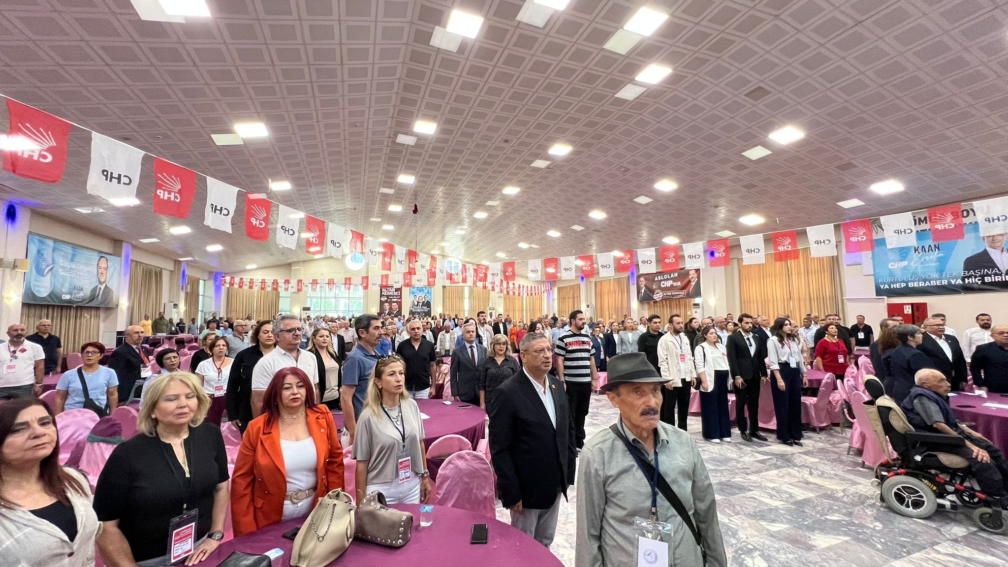 Bugün 2 Ekim 2025 Perşembe, CHP Efeler İlçe Başkanlığı seçimli olağan kongresi Çeştepe Kültür Merkezi Düğün Salonu’nda başladı. Açılışta İstiklal Marşı okundu ve saygı duruşu yapıldı.