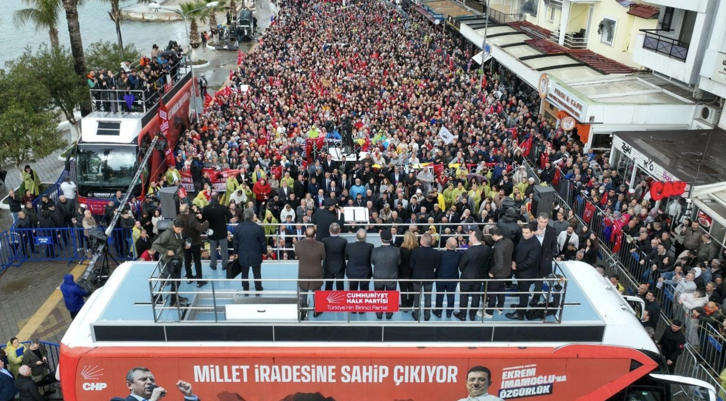 Kuşadası Belediye Başkanı Ömer Günel hakkında yürütülen soruşturma kapsamında 16 Mart’ta tutuklanarak görevden uzaklaştırılmasının ardından düzenlenen mitingde, CHP Genel Başkanı Özgür Özel vatandaşlara hitap etti.