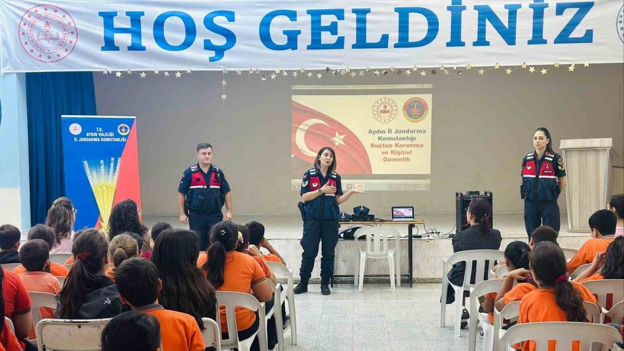 Aydın İl Jandarma Komutanlığı Aile İçi Şiddetle Mücadele ve Çocuk Kısım Amirliği ve Çine Akçaova Jandarma Karakol Komutanlığı personeli, Çine Akçaova Ortaokulu’nda öğrenim gören öğrencilerle bir araya geldi. "Bir ders de jandarmadan" faaliyetleri kapsamında öğrencileri sınıflarında ziyaret eden ekipler, öğrencilere güvenlik eğitimi verdi. "Güvenlik Bilinçle Başlar" temasıyla çocukların günlük yaşamda karşılaşabilecekleri tehlikelere karşı nasıl davranmaları gerektiği, kişisel güvenliklerini sağlamak için dikkat etmeleri gereken kurallar ve internet ortamında maruz kalabilecekleri siber zorbalık durumlarında yapmaları gerekenler hakkında bilgilendirme yapılırken, jandarma ekiplerince çocukların bilinçli bireyler olarak yetişmesi, güvenli bir geleceğe hazırlanması için eğitim ve farkındalık çalışmalarına aralıksız devam edileceği öğrenildi.