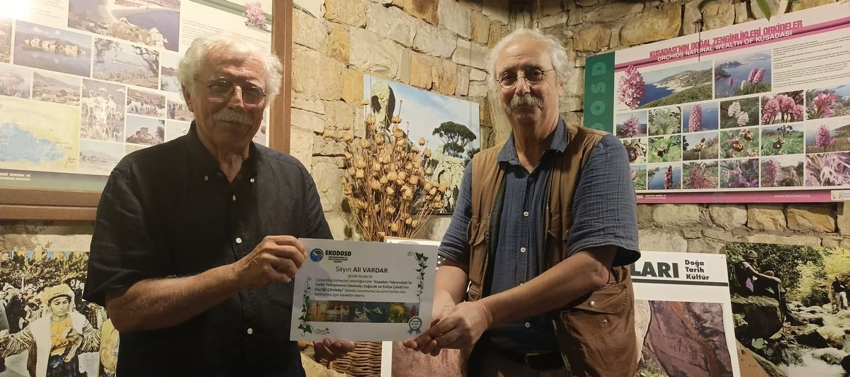 Yapılan sunumun ardından konukların sorularını da yanıtlayan Ali Vardar’a, arkeolog Levent Vardar tarafından EKODOSD’un teşekkür belgesi takdim edildi.