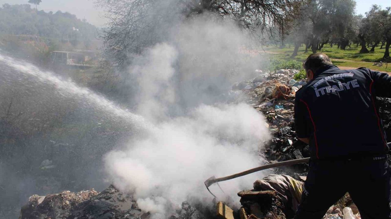 Aydın'ın Efeler ilçesinde çöplük alanda çıkan yangın itfaiye ekiplerini harekete geçirirken, mahalle sakinleri sürekli benzer olayın yaşandığını ve dumandan dolayı rahatsızlık yaşadıklarını ifade ederek bölgenin temizlenmesini istedi.