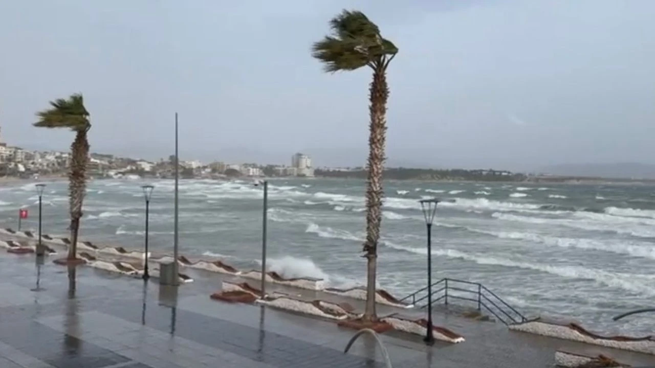 Yalı caddesi ve Altınkum Plajı’nda yükselen dev dalgalar, sahil boyunca etkili oldu.