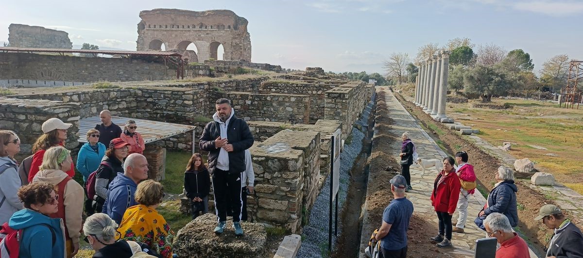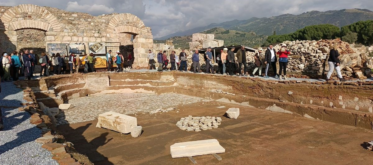 Gezi hakkında açıklama yapan EKODOSD Başkanı Bahattin Sürücü; 'Aydın'da kentin yanı başında olan, Strabon'un 'masa biçimli bir yükselti' dediği Tralleis Antik Kenti'ne gittik bu hafta. Profesyonel turist rehberi Hakan Bahçecioğlu'yla birlikte, antik çağdaki anlamı 'topraklar arasında' olan Mesogis Dağları'nın yamaçlarında yer alan harika peyzajlar oluşturan Kızılçay vadisi rotamızın ilk durağı oldu. Karagözler yaylasından su getiren Kızılçay'ın geçit vermeyen yarlarının içinde gümüş bir gerdanlık gibi duran olağanüstü bir yapıyı görmek için çayın içine indik. Yağan yağmurlardan sonra çaydan geçebilir miyiz diye düşünürken, ne yazık ki su birikintisine bile rastlayamadık. Çayın içinde yürürken en önemli sorunun susuzluk olduğunu düşündük. Tralleis'e su taşıyan Roma Dönemi'ne ait bir mühendislik harikası olan Karakemer'in görkemli siluetini izleyip, kilometrelerce yukarıdan suları kentlerine nasıl taşıdıklarını gördük. Asırlardır ayakta kalan ölmez ağaç zeytinin 'dağlarından yağ akar' sözünün gerçekliğini yerinde izledik. Aydın'ın doğal peyzajına büyük zenginlik kazandıran, Tralleis antik kentinin arkasında panoramik bir tablo gibi duran kızıl toprakların yükseltilerinden bir seyir yaptık. Peyzaj çalışmaları devam eden ve önümüzdeki aylarda ziyaretçiye açılması planlanan Tralleis antik kentine geldik. Ziyarete açılmaya hazırlanan Efeler ilçesi, Topyatağı mevkiinde yer alan Tralleis antik kentiyle ilgili bir sunum yapıldı. Üçgözler olarak bilinen devasa yapının Aydın'ın tanıtımında çok önemli bir yeri olduğu, bu kompleksten çok önemli bilim insanları ve sporcuların çıktığı ve havuzda yapılan çalışmalar anlatıldı. Zengin Roma Villaları ve çevresinde yer alan metal malzeme üretiminin yapıldığı işlikler ve çıkarılan eserler anlatıldı. Tralleis antik kentinin, Efes kadar önemli bir turizm destinasyonu haline geleceğini anlatan kazı başkanı Prof. Dr. Murat Çekilmez, bu nedenle çevre düzenleme projesi kapsamında karşılama merkezi, yürüyüş yolları, ışıklandırma gibi yeniliklere önem verdiklerini söyledi. Biz de ziyarete açıldıktan sonra Kuşadası'ndan da tarihe duyarlı yerli yabancı birçok insanın Tralleis'e ziyaret etmesi için gerekli çalışmaları yapacağımızı söyledik. Aydın'a bu kadar yakın hem doğal hem de tarihi zenginliklerin bulunması çok önemlidir. Bu değerlerin gelecek kuşaklara korunarak ulaştırılması, Aydınlıların sahip çıkması ve destekleri sayesinde olacaktır' dedi.