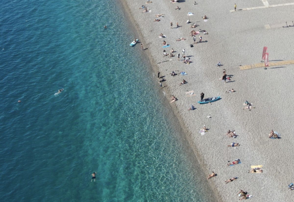 Sıcak ve güneşli havayı fırsat bilen kent sakinleri ve yabancı turistler, Konyaaltı Sahili'ni doldururken kasım ayında denize girmenin keyfini çıkardı.