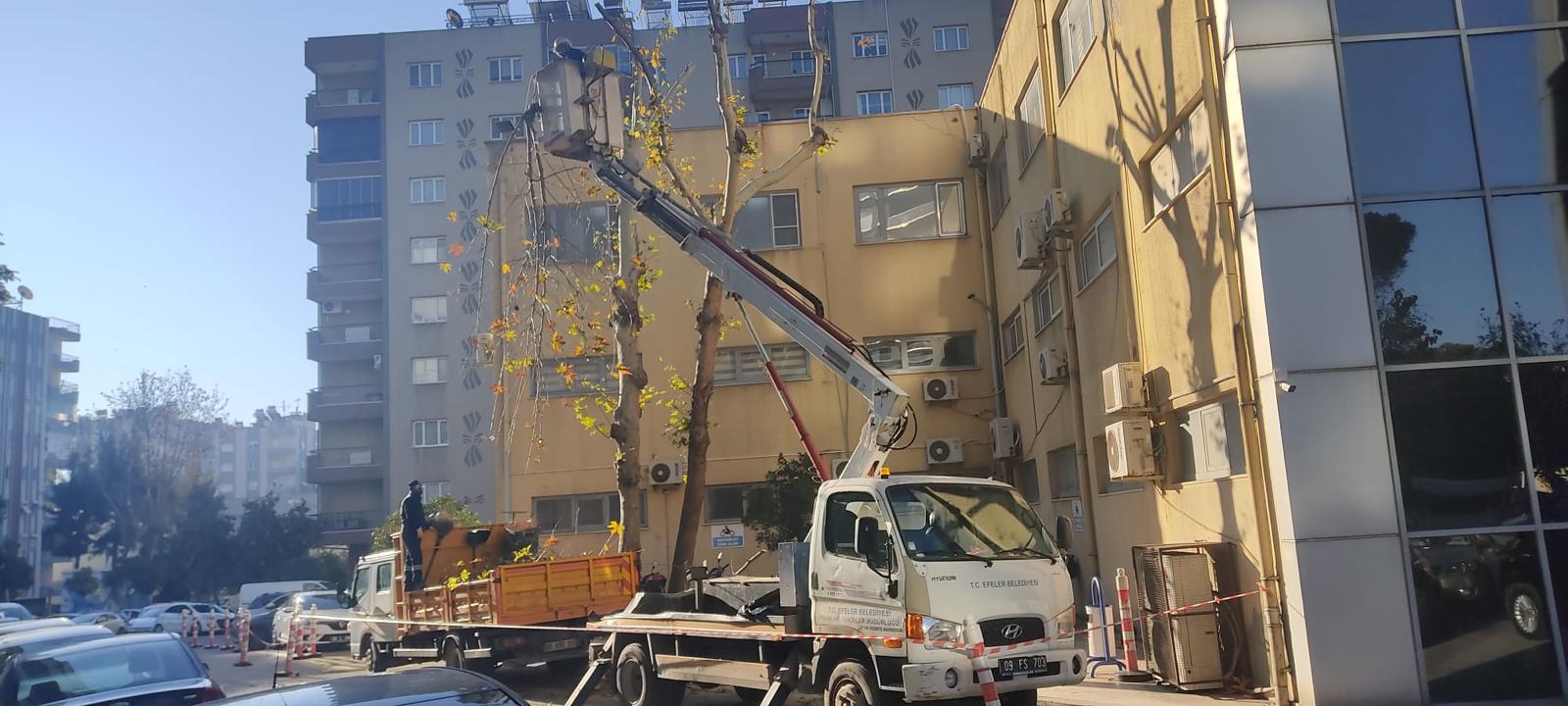 Efeler Belediyesi’nin hazırladığı program doğrultusunda çalışmalar, mahalle mahalle planlanarak yürütülüyor. Parklar, yeşil alanlar ve sokak aralarındaki ağaçlarda gerçekleştirilen budamalar; ağaç türü ve gelişim süreci dikkate alınarak yapılıyor. Bu sayede ağaçların sağlıklı gelişimi desteklenirken, kent estetiğine de katkı sunuluyor.