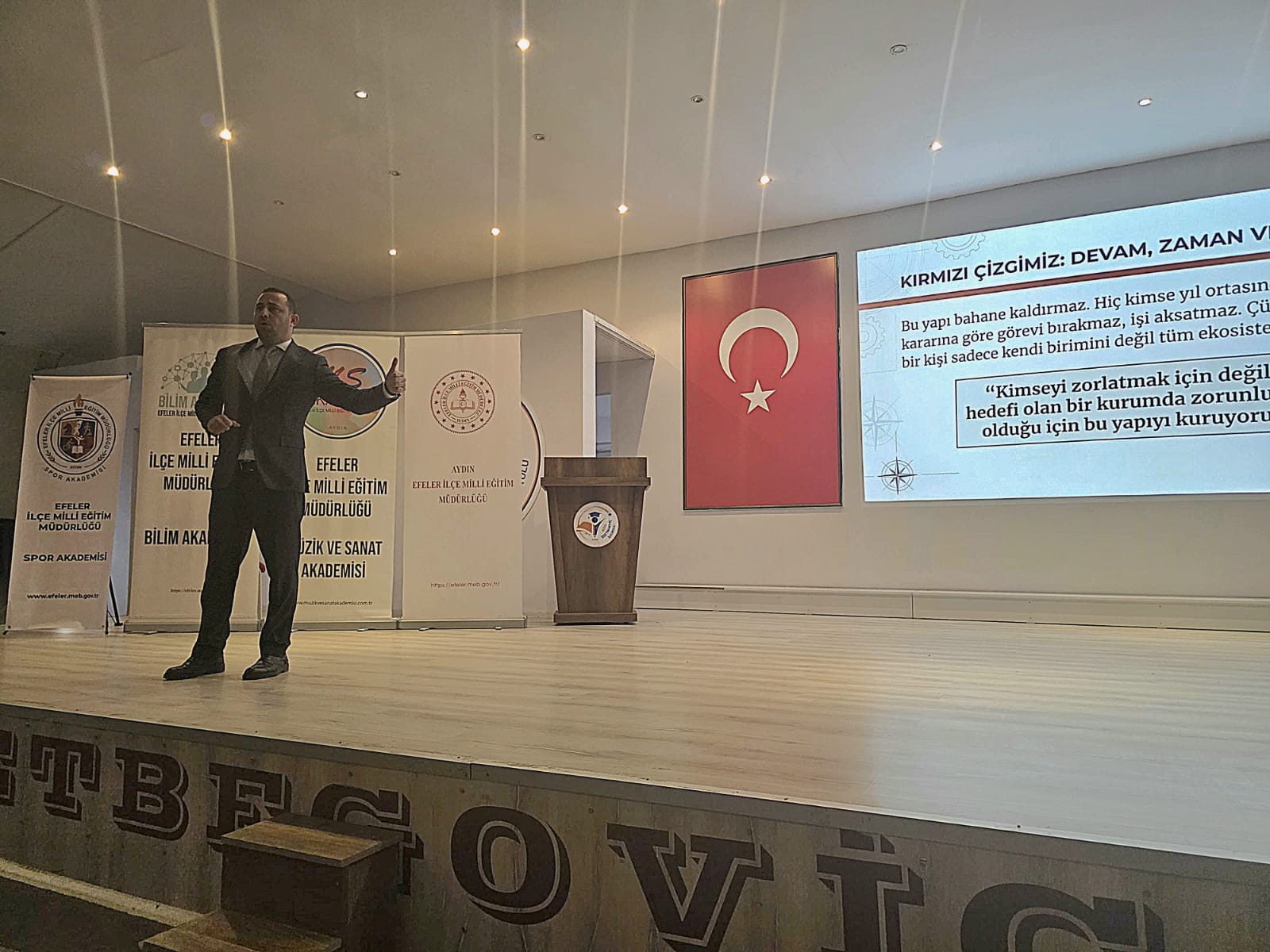 Müzik ve Sanat Akademisi Koordinatörü Aytaç Onur Demirtaş ise sunumunda akademinin yeni dönem hedeflerini anlatarak ilçede sürdürülebilir ve nitelikli bir öğrenci havuzu oluşturmak, performans topluluklarının disiplinini ve sanatsal niteliğini güçlendirmek, okul dışı sanat eğitimine yönelik Efeler Modelini il ve bakanlık düzeyine sunulabilir bir yapıya dönüştürmek ve Efeler'i Türkiye Yüzyılı Maarif Modeli ile uyumlu şekilde örnek bir sanat eğitim merkezine taşımayı hedeflediklerini ifade etti.