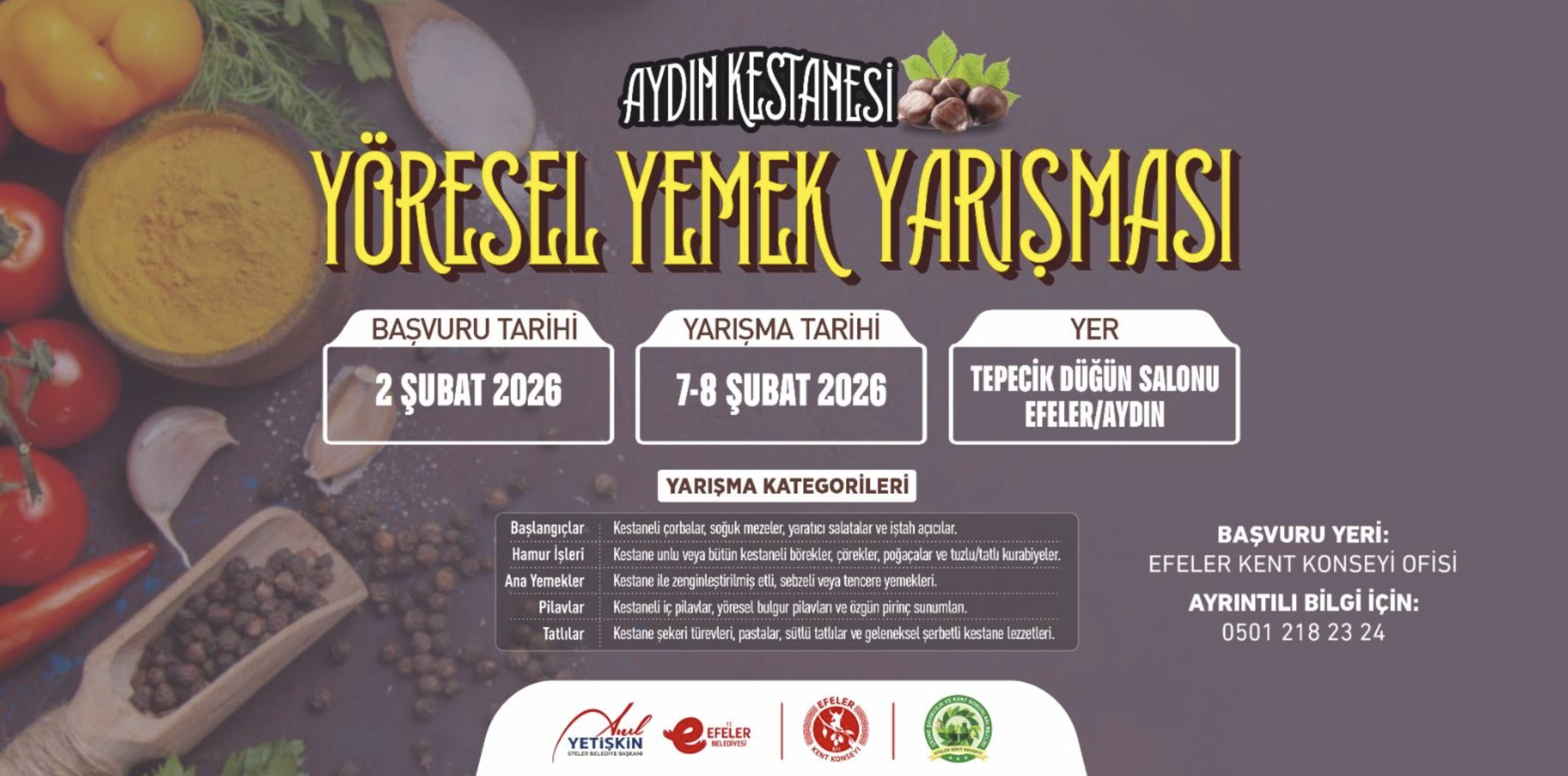 Efeler Belediyesi’nin ev sahipliğinde düzenlenecek yarışmanın, Aydın kestanesinin gastronomi alanındaki değerini ön plana çıkarması ve yöresel lezzetlere olan ilgiyi artırması bekleniyor.