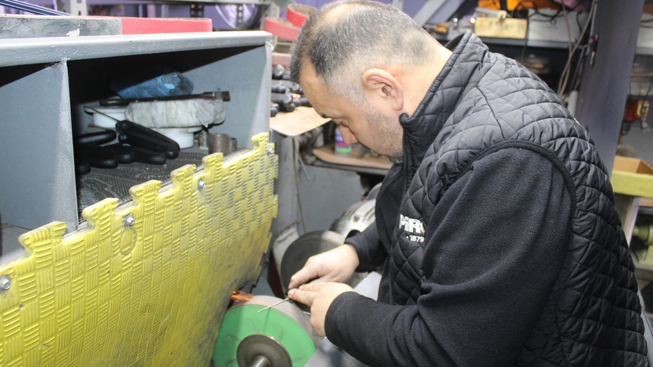 Özellikle balık fabrikalarında kullanılan fileto bıçaklarını, talep doğrultusunda daha kullanışlı hale getirdiklerini ifade eden bıçak ustası Hakkı Karakaya, "Bunlar fileto bıçağı. Balık fabrikalarında kullanılıyor bunlar. Sıfırı bu şekilde geliyor ama bu şekilde vatandaş kullanamadığı için biz talepleri doğrultusunda bıçağı yeniden şekillendiriyoruz. Bıçağı önce boyundan sonra eninden alıyoruz. Bu şekilde yapmamızın sebebi ise bıçağın balığın içinde rahat dönebilmesi için. Çünkü kilo başı çalıştıkları için fabrikalarda, bizden bu şekilde talep ediyorlar. Biz de o şekilde yardımcı olmaya çalışıyoruz arkadaşlara. Orijinal gelen fileto bıçağını, incelterek düşürüyoruz yani. Herkesin yapabileceği bir şey değil zaten bu iş. Yani her bileyicinin yapabileceği bir şey değil. Zaten çoğu arkadaşlar yapmıyor yani uğraştırdığı için. Orijinal fileto bıçağını önce çarkta boyundan ve eninden alıyoruz, sonra müşterinin talebi doğrultusunda inceltmeyi yapıyoruz. Bıçağı bu şekilde inceltme işi de ayrı bir ustalık istiyor tabi. Talepler iyi. Burada 3 fabrika var. Ayrıca Çine, Didim ve Söke'den gelenler var. İzmir Torbalı'dan ve Muğla Milas'tan da gelenler var. Yani ustalık yayıldıkça her taraftan talep var yani" dedi.