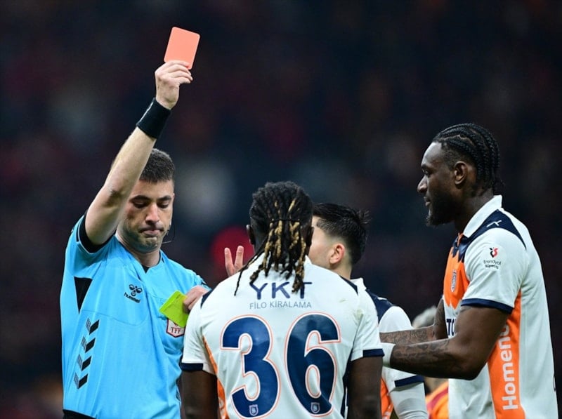 Başakşehir'de Festy Ebosele, 28 ve 56. dakikalarda gördüğü sarı kartların ardından kırmızı kartla oyun dışında kaldı.