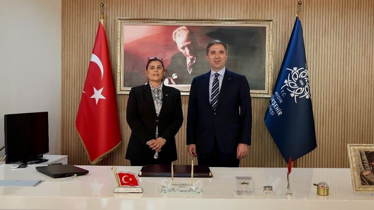 Aydın Büyükşehir Belediye Başkanı Özlem Çerçioğlu’nu ziyaret eden AK Parti Genel Başkan Yardımcısı Zafer Sırakaya, çalışmalarından dolayı Çerçioğlu’nu tebrik etti.