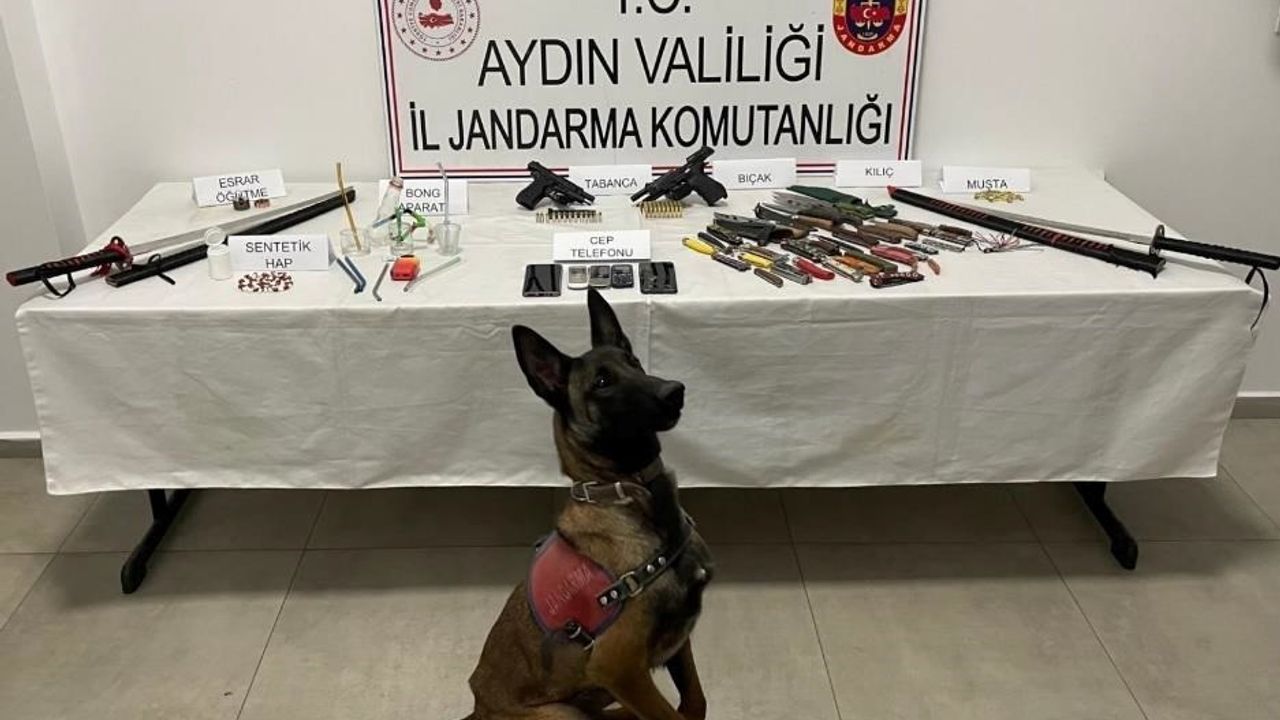 Aydın İl Jandarma Komutanlığı Narkotik Suçlarla Mücadele Şube Müdürlüğü ve İncirliova İlçe Jandarma Komutanlığı ekiplerince, uyuşturucu madde imal ve ticaretine yönelik yürütülen çalışmalar devam ediyor. Edinilen bilgiye göre, Yazıdere Mahallesi'nde iki şüphelinin ikametinde adli arama gerçekleştirildi. B. A. (42) ve N.Y. (32) isimli şahısların adreslerinde Jandarma Komando Timi, narkotik ve bomba arama köpeklerinin katılımıyla yapılan aramada, 51 adet sentetik hap, 2 adet bong aparatı, 2 adet tabanca, 59 fişek, 3 şarjör, 25 adet sustalı bıçak, 2 adet samuray kılıcı, 1 muşta, 5 cep telefonu ele geçirildi. Cumhuriyet Savcısı'nın talimatıyla N. Y. ifadesinin ardından serbest bırakılırken, B.A. sevk edildiği adli makamlarca serbest bırakıldı.
