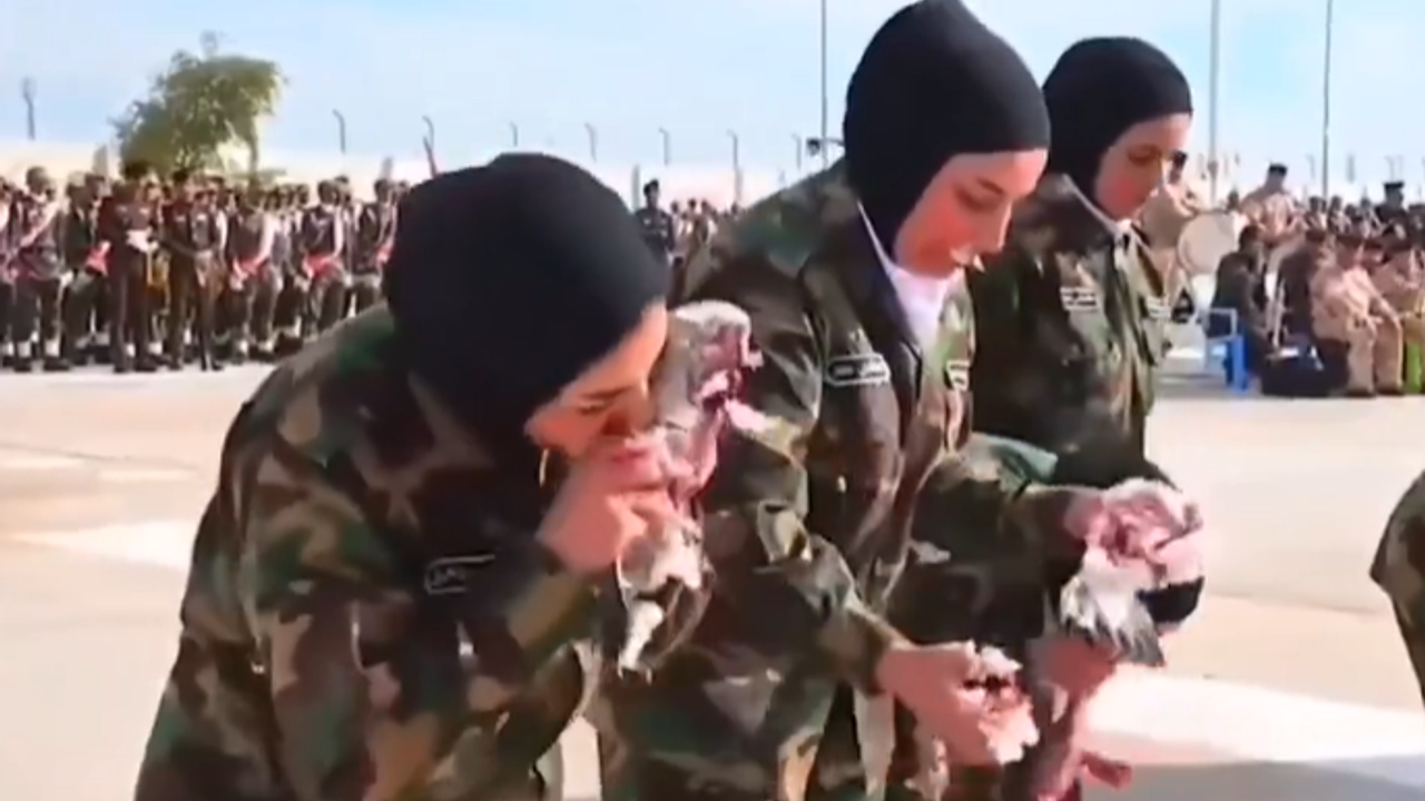 Irak’ta bir askeri okulun mezuniyet töreninde kadın askerler, sıra dışı bir gösteriyle dikkat çekti. Ailelerinin ve davetlilerin önünde, dayanıklılıklarını kanıtlamak amacıyla canlı yılan ve güvercin yediler.