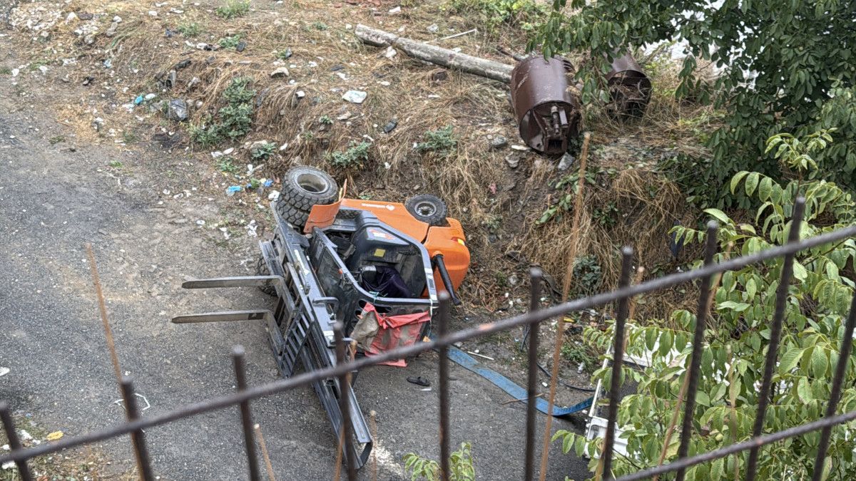 Forkliftin direksiyonuna geçen Arık, iddiaya göre fren yerine gaza bastı.