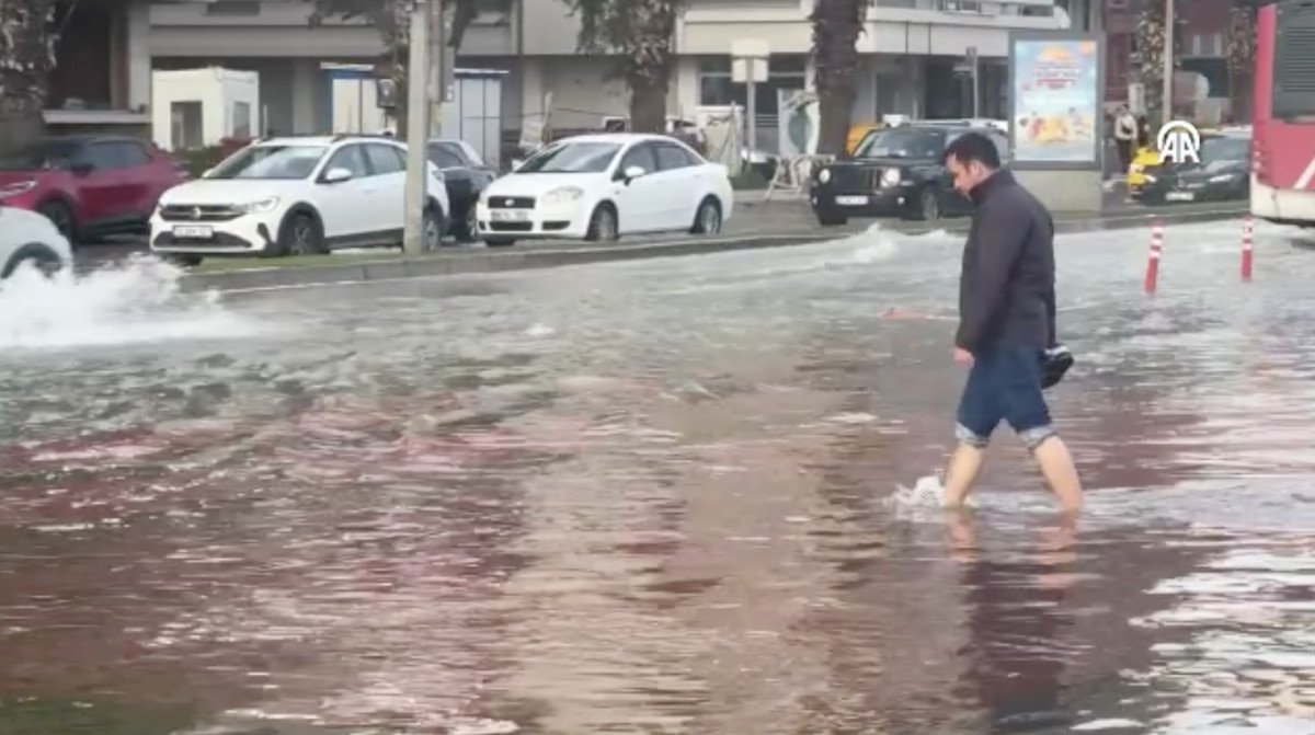Karşıyaka Vapur İskelesi, Zübeyde Hanım Nikah Sarayı ile Karşıyaka Spor Kulübü Yelken Şube arasındaki bölgede, deniz taşması nedeniyle araçlar yolda ilerlemekte güçlük çekti.