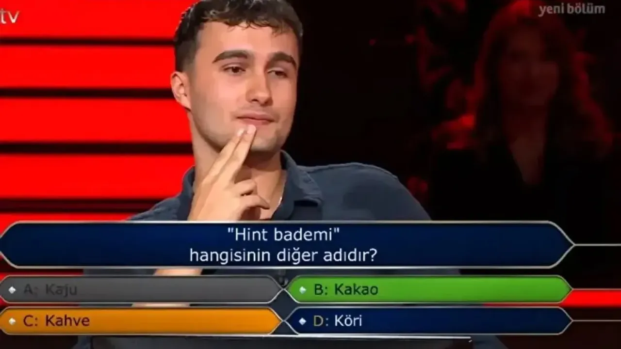 Yarışmacıya “Hint bademi hangisinin diğer adıdır?” sorusu yöneltildi.