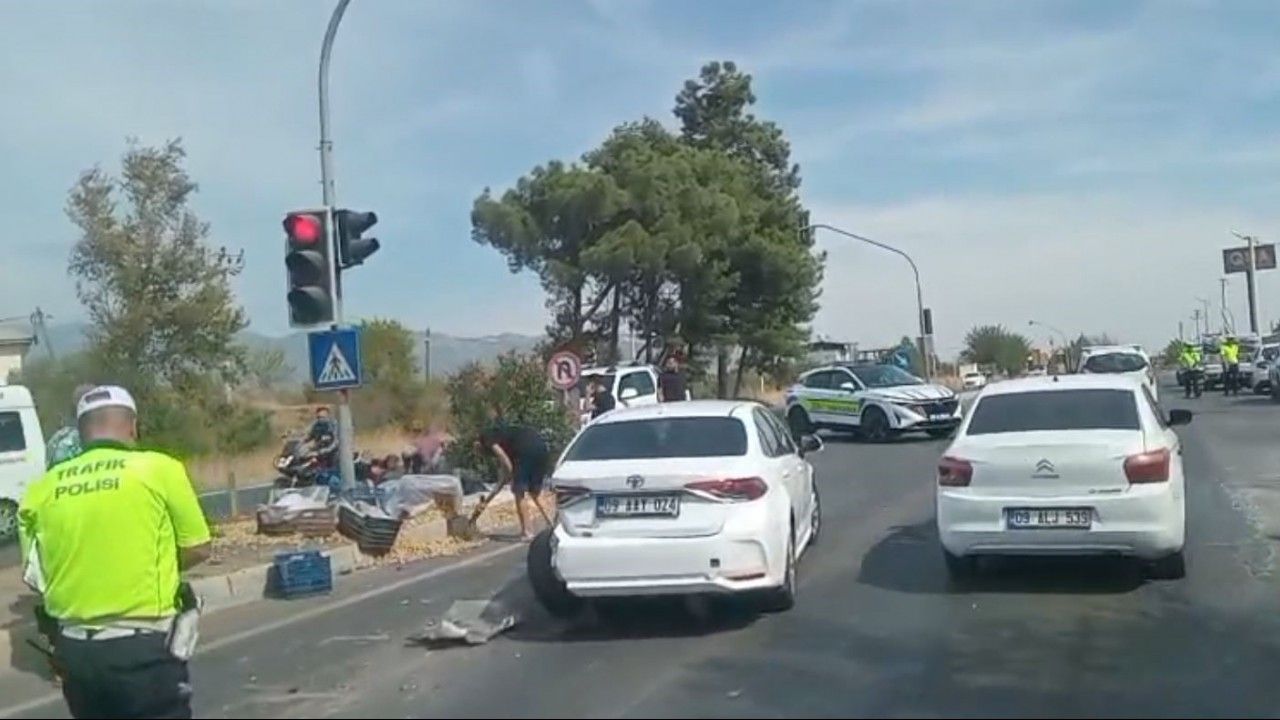 Kaza öğlen saatlerinde Aydın-İzmir Karayolu Kardeşköy Kavşağı’nda meydana geldi. Edinilen bilgiye göre aynı istikamete seyir halinde olan incir taşıyan kamyonet ile otomobil çarpıştı. İncir yüklü kamyonetin önündeki otomobile çarpması sonucu meydana gelen kazada maddi hasar oluşurken kamyonetteki incir dolu kasalar da yola düştü. Oldukça değerli olan incirlerin telef olmaması için vatandaşlar ve polis ekipleri adeta zamanla yarışarak yola dökülen incirleri topladı. İncirlerin toplanıp kazayla ilgili gerekli tutanakların tutulmasının ardından yol trafiğe açıldı.