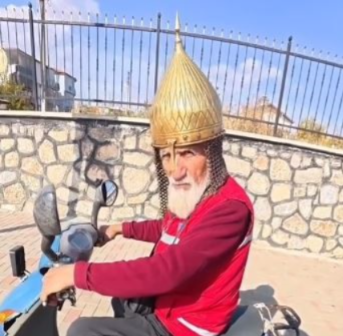 Denizli'de kask yerine miğfer takan Hasan Dede görenleri hem şaşırttı hem gülümsetti. Seyir halindeyken bir motosikletçinin kask kamerasına yansıyan görüntülerde motosikletçi, 'Polisler bir şey demiyor mu?' diye sorduğunda, Hasan Dede olarak bilinen Hasan Keskin, kendinden emin bir şekilde, 'Benim miğfer sizin kasklardan daha sağlam. Bu miğfer parçalanmaz' diyerek cevap verdi.