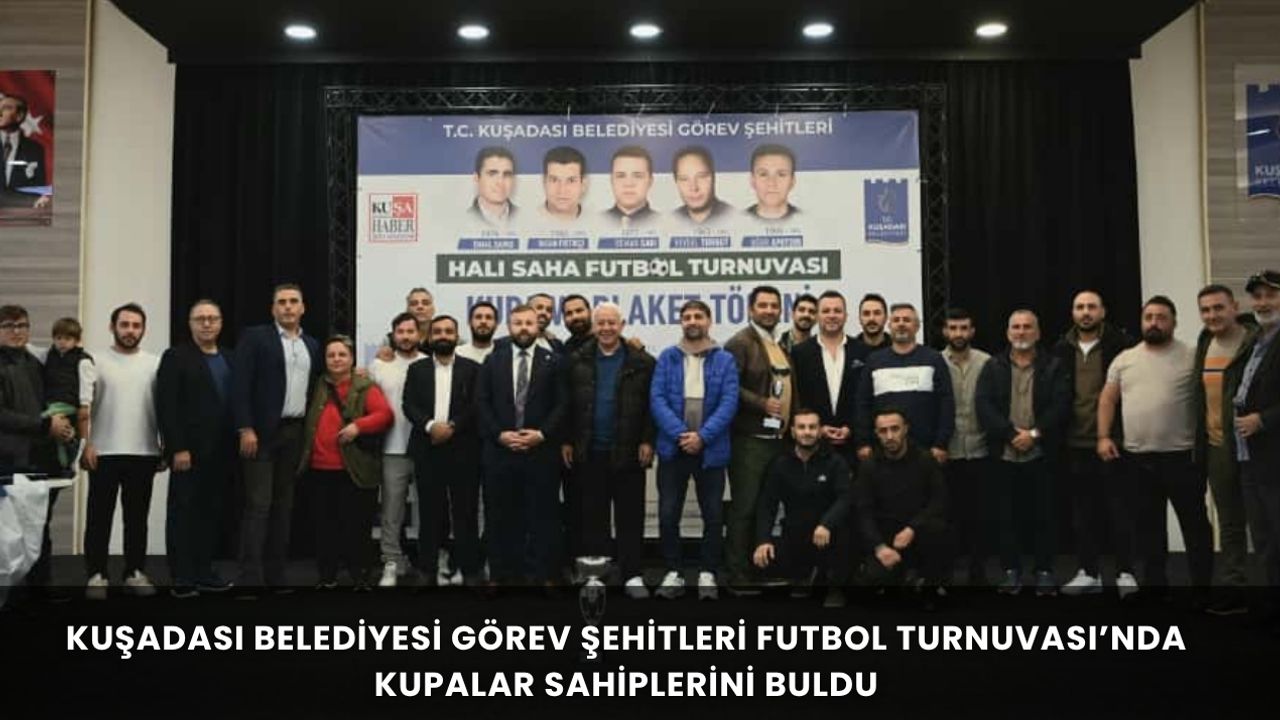 Kuşadası Belediyesi’nin verdiği destekle KUŞA Haber tarafından düzenlenen ‘Görev Şehitleri Kupası Halı Saha Futbol Turnuvası’nda’ dereceye giren takımlar ile organizasyona destek olan firmalara kupa ve plaketleri düzenlenen törenle verildi.