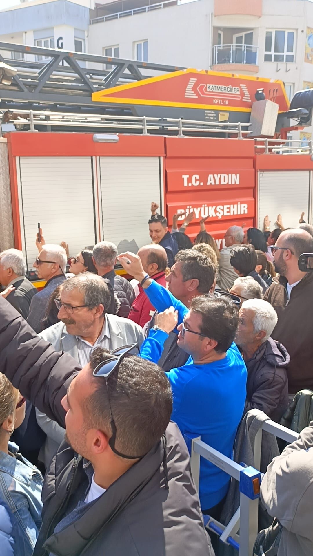 CHP’lilerin açıklama yapmak üzere toplandığı sırada Aydın Büyükşehir Belediyesi’ne ait itfaiye araçlarının sirenler çalarak belediye binası önünden geçmesi, mitinge katılan vatandaşlar arasında tepkiye yol açtı.