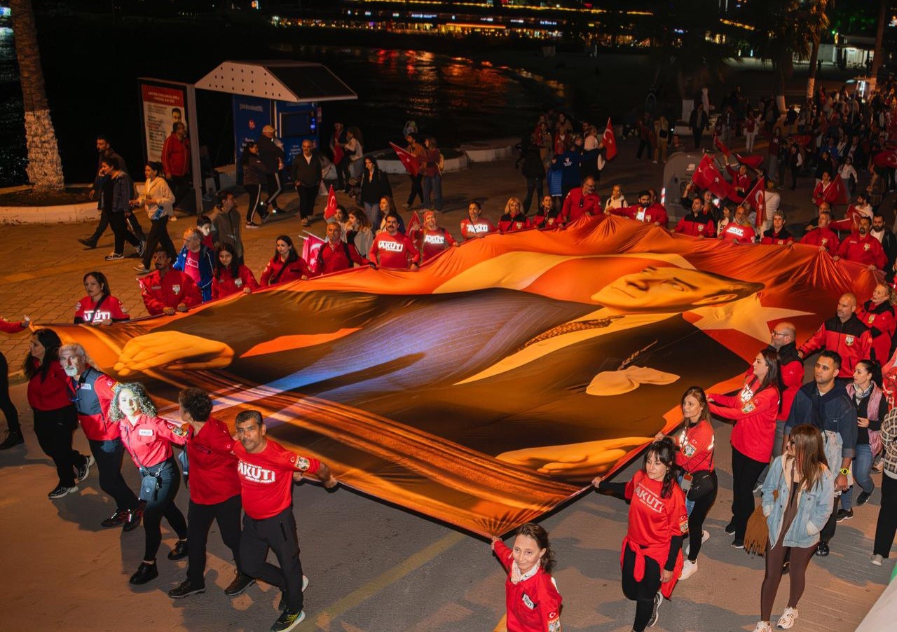 Kortej boyunca coşku hiç azalmadı; her yaştan yurttaş, büyük bir gururla Cumhuriyet marşlarını söyledi. Kısmet Otel’den İsmail Cem Dostluk ve Barış Meydanı’na kadar uzanan kalabalığın sonu adeta görünmedi.